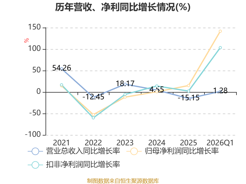 负债重大变化方面,截至2026年一季度末,公司长期借款较上年末增加23.91%,占公司总资产比重上升1.87个百分点;应付职工薪酬较上年末减少45%,占公司总资产比重下降1.24个百分点;应付票据及应付账款较上年末减少16.96%,占公司总资产比重下降1.23个百分点;应交税费较上年末减少62.66%,占公司总资产比重下降0.49个百分点。