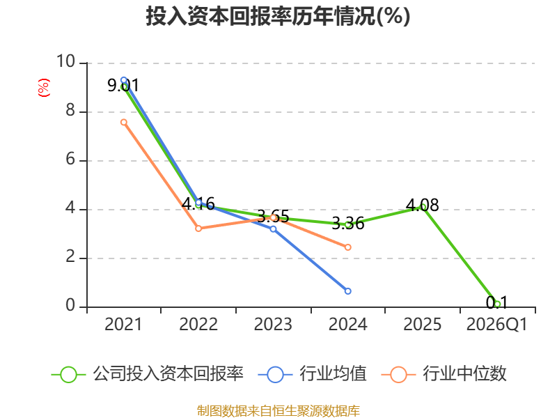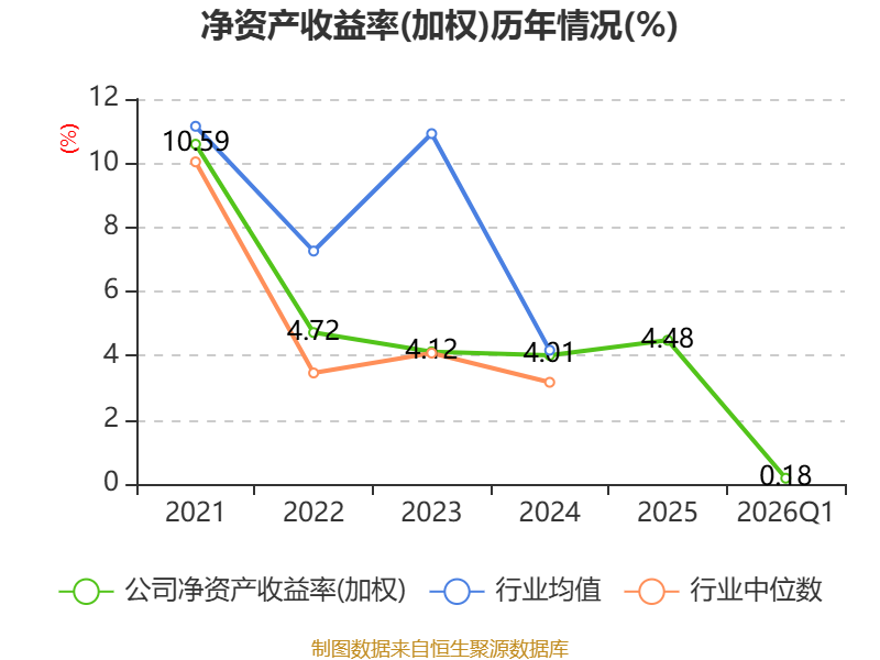 盈利能力方面, 2026年一季度公司加权平均净资产收益率为0.18%,同比上升0.63个百分点。公司2026年第一季度投入资本回报率为0.1%,较上年同期上升0.63个百分点。