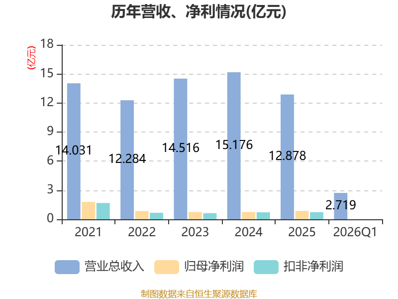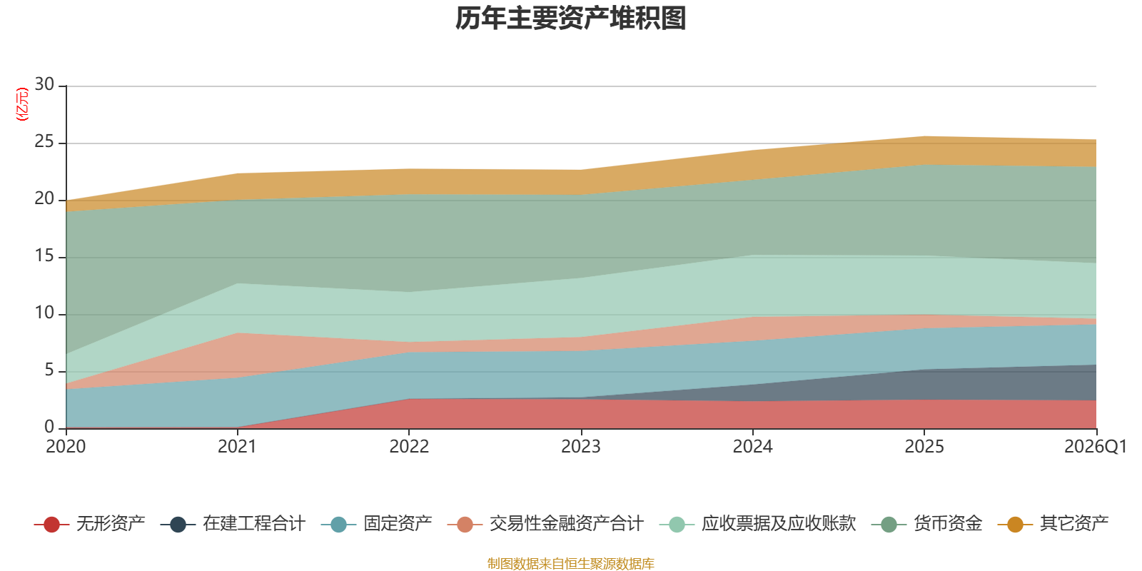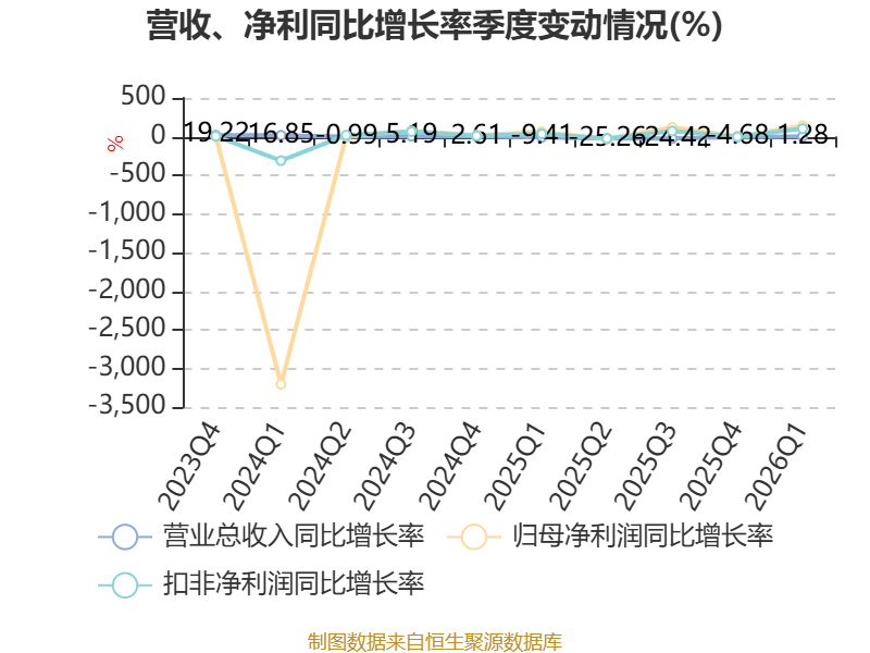 资产重大变化方面,截至2026年一季度末,公司交易性金融资产合计较上年末减少58.32%,占公司总资产比重下降2.72个百分点;货币资金较上年末增加6.17%,占公司总资产比重上升2.3个百分点;在建工程合计较上年末增加16.99%,占公司总资产比重上升1.91个百分点;应收票据及应收账款较上年末减少6%,占公司总资产比重下降1个百分点。