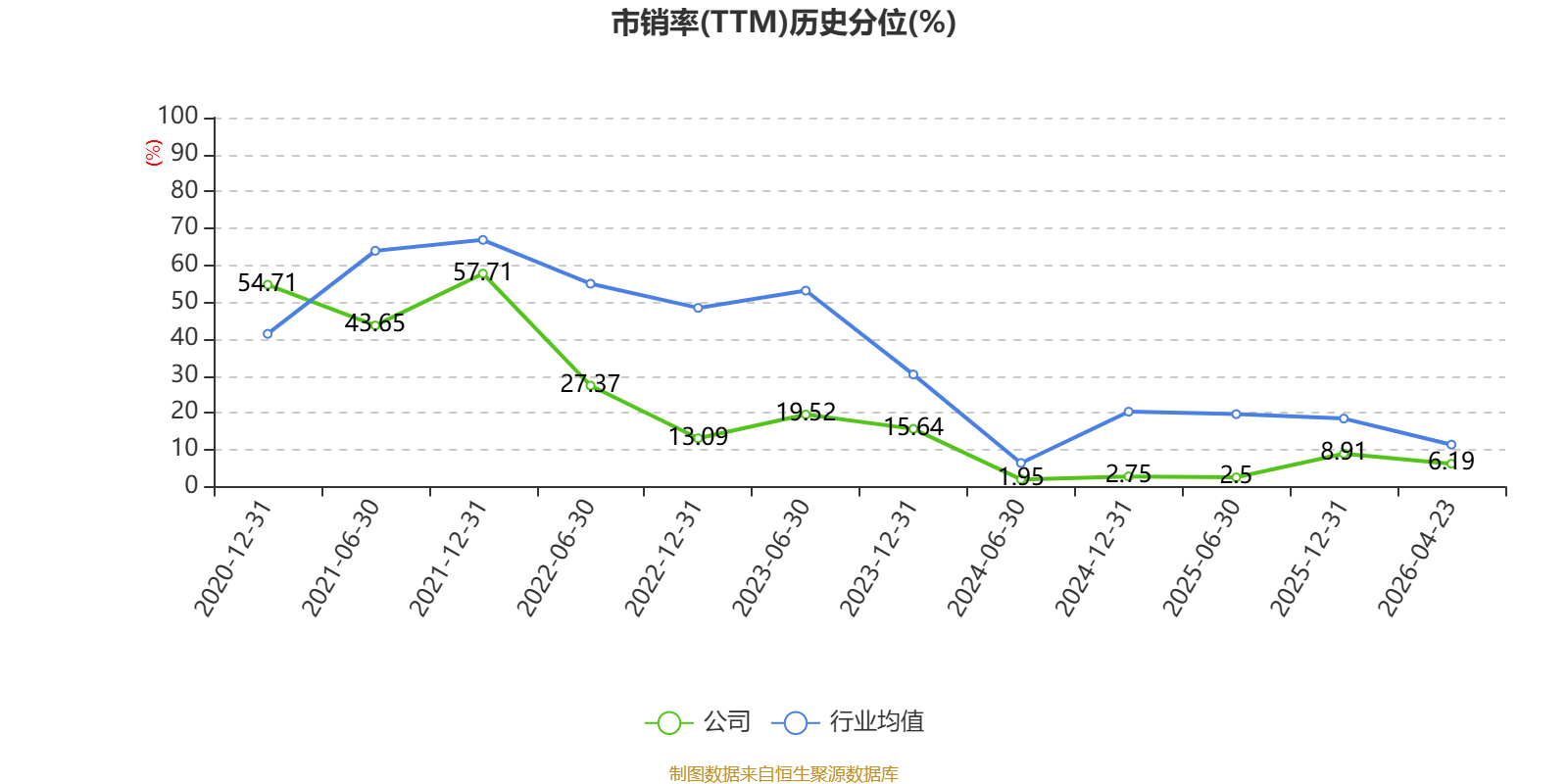 以4月23日收盘价计算,奇正藏药目前市盈率(TTM)约为19.76倍,市净率(LF)约2.62倍,市销率(TTM)约5.46倍。