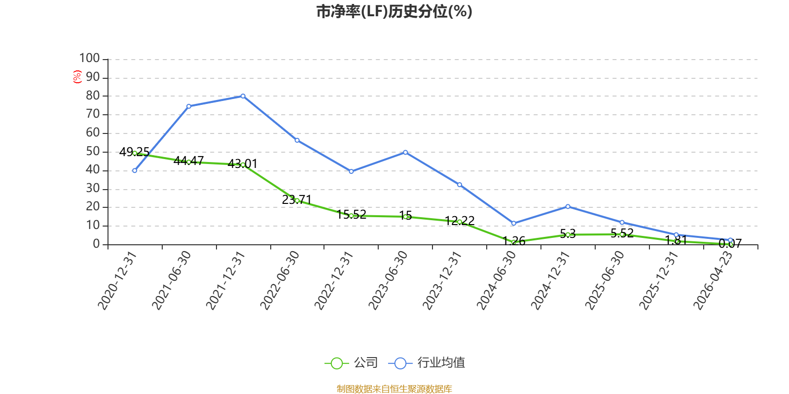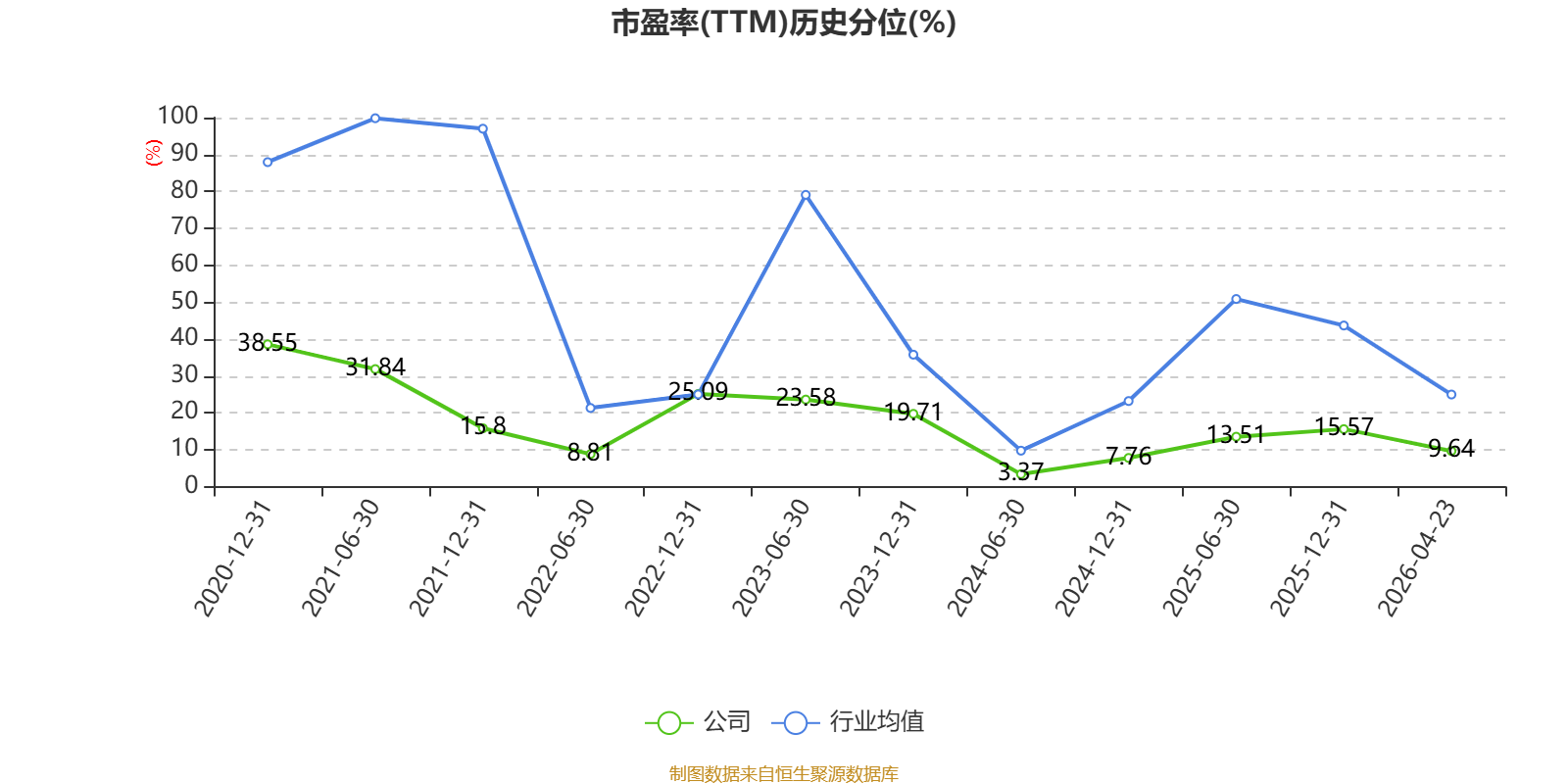 市盈率、市净率为负时,不显示当期分位数,会导致折线图中断。