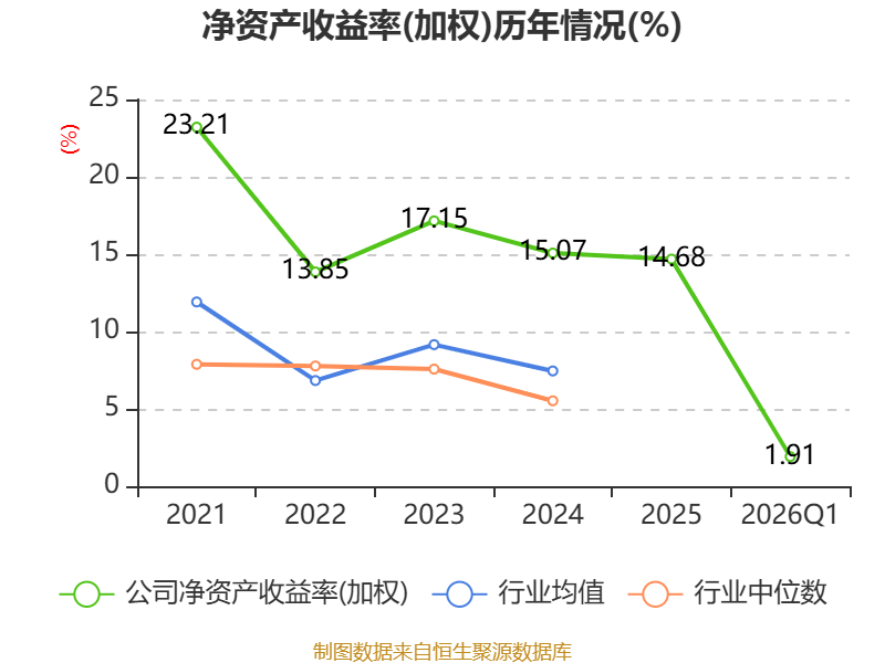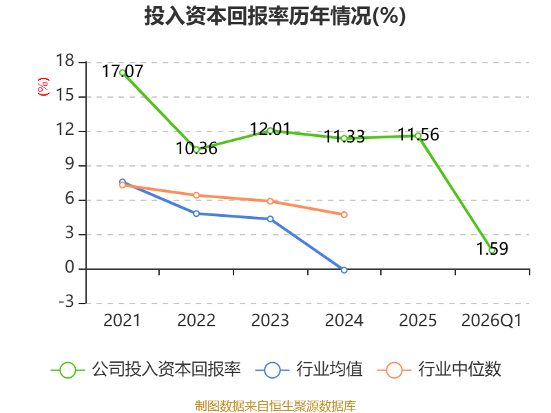 盈利能力方面, 2026年一季度公司加权平均净资产收益率为1.91%,同比上升0.07个百分点。公司2026年第一季度投入资本回报率为1.59%,较上年同期上升0.11个百分点。