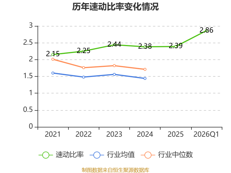 2026年第一季度,公司流动比率为3.12,速动比率为2.86。