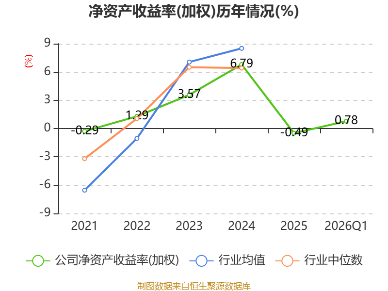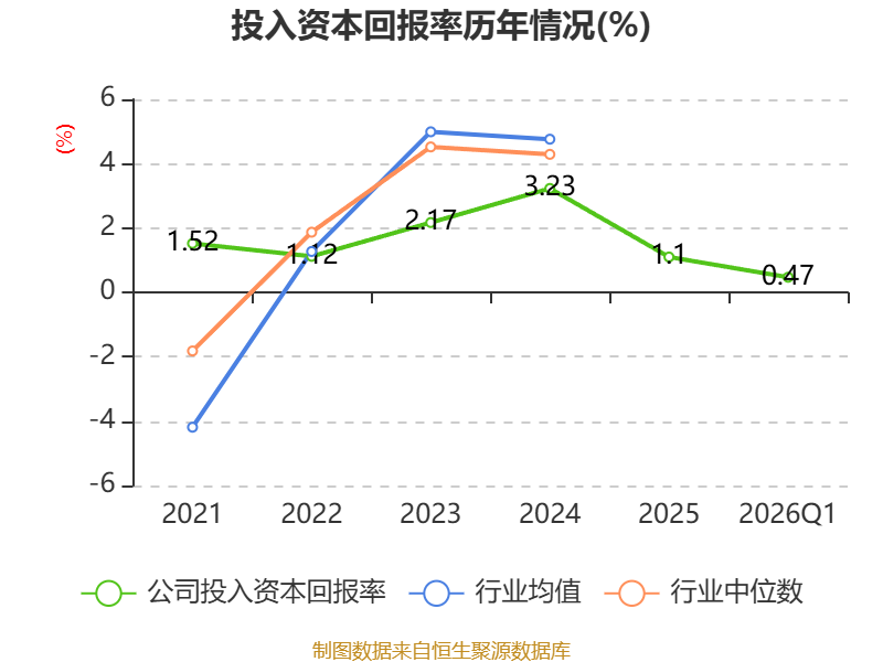 盈利能力方面, 2026年一季度公司加权平均净资产收益率为0.78%,同比上升1.32个百分点。公司2026年第一季度投入资本回报率为0.47%,较上年同期上升0.31个百分点。