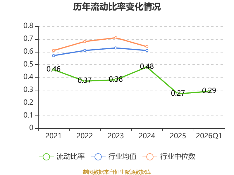 2026年第一季度,公司流动比率为0.29,速动比率为0.25。