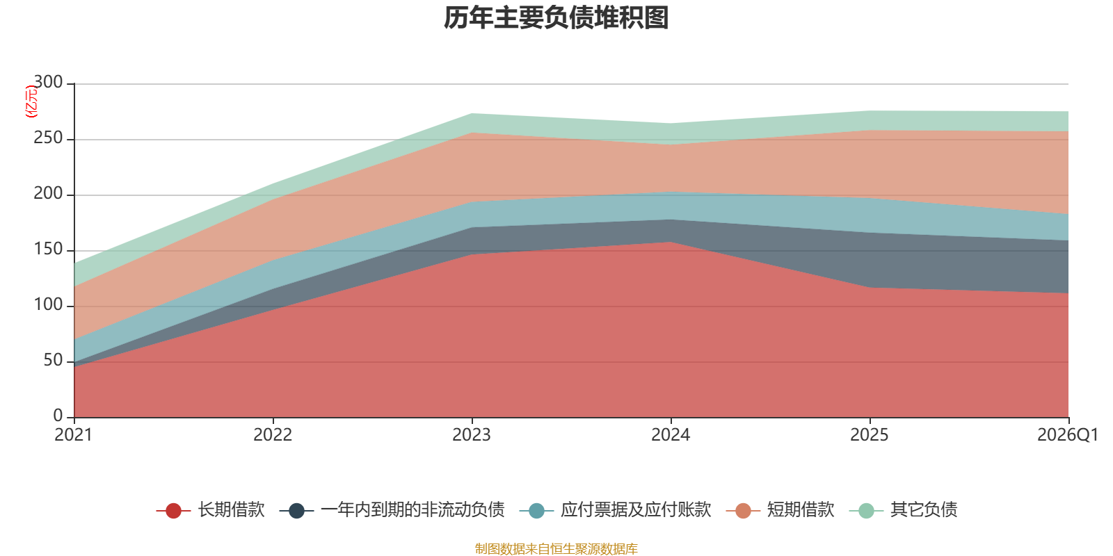 负债重大变化方面,截至2026年一季度末,公司短期借款较上年末增加21.55%,占公司总资产比重上升3.17个百分点;应付票据及应付账款较上年末减少23.46%,占公司总资产比重下降1.78个百分点;长期借款较上年末减少4.34%,占公司总资产比重下降1.27个百分点;一年内到期的非流动负债较上年末减少4.1%,占公司总资产比重下降0.51个百分点。