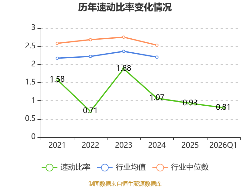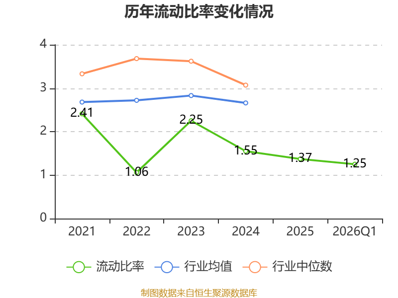 2026年第一季度,公司流动比率为1.25,速动比率为0.81。