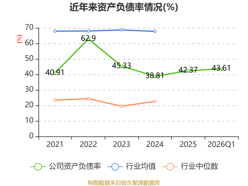 负债重大变化方面,截至2026年一季度末,公司短期借款较上年末增加14.01%,占公司总资产比重上升1.7个百分点;长期借款较上年末减少100%,占公司总资产比重下降1.64个百分点;一年内到期的非流动负债较上年末增加29.65%,占公司总资产比重上升0.98个百分点;应付票据及应付账款较上年末增加9.24%,占公司总资产比重上升0.84个百分点。