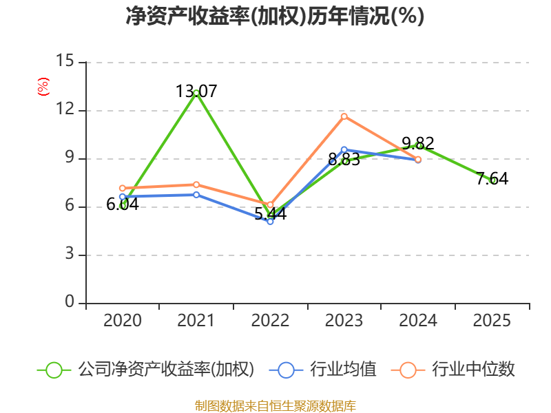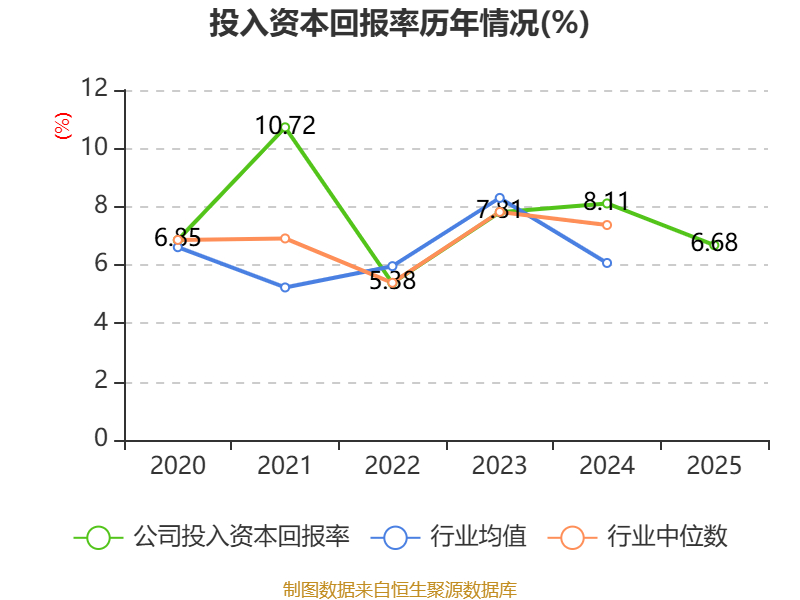 数据显示,2025年公司加权平均净资产收益率为7.64%,较上年同期下降2.18个百分点。公司2025年投入资本回报率为6.68%,较上年同期下降1.43个百分点。