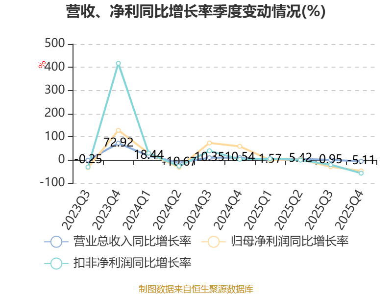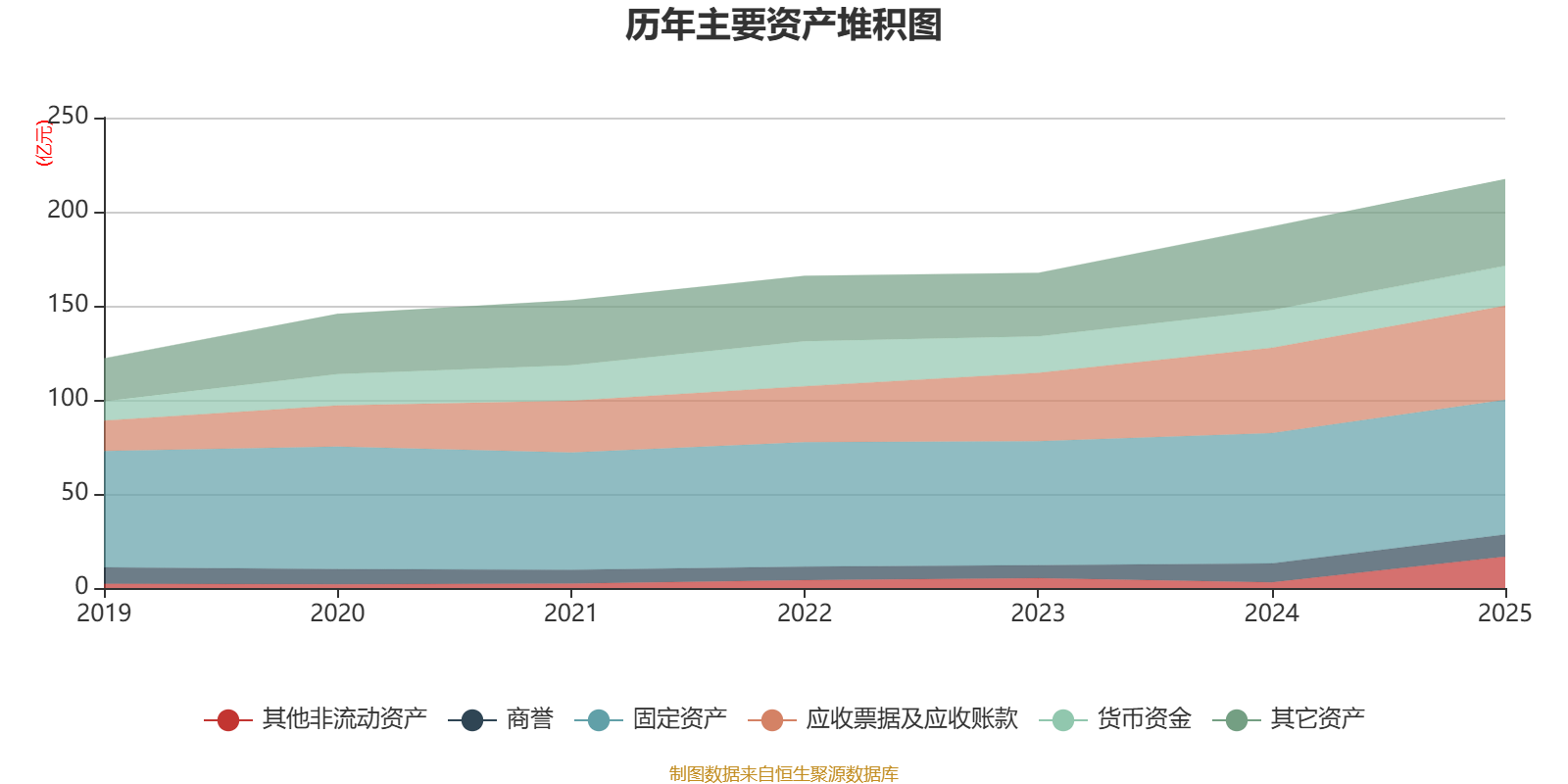 资产重大变化方面,截至2025年末,公司其他非流动资产较上年末增加458.48%,占公司总资产比重上升6.12个百分点;固定资产较上年末增加3.37%,占公司总资产比重下降3.1个百分点;货币资金较上年末增加5.9%,占公司总资产比重下降0.66个百分点;应收票据及应收账款较上年末增加10.28%,占公司总资产比重下降0.59个百分点。