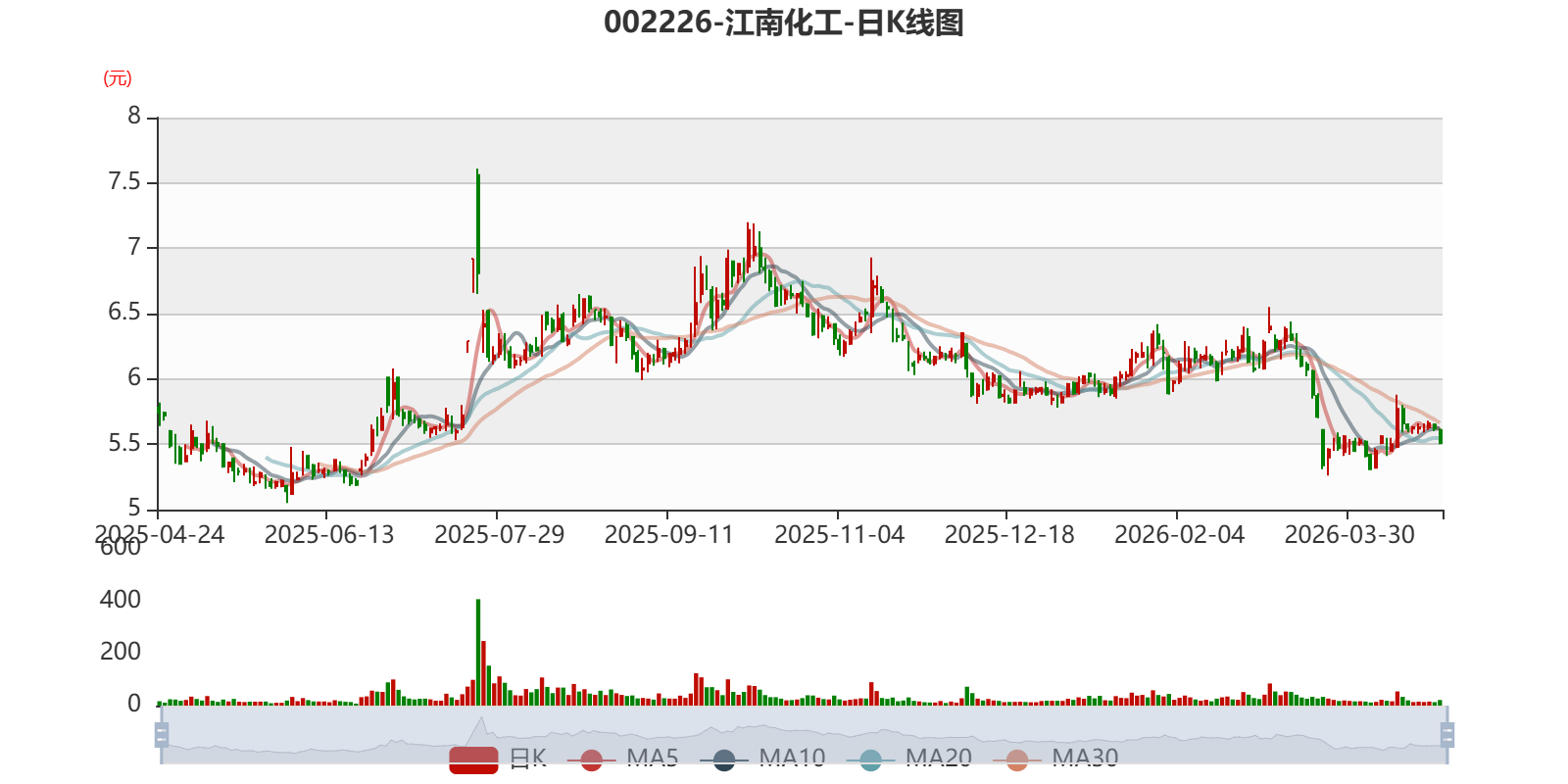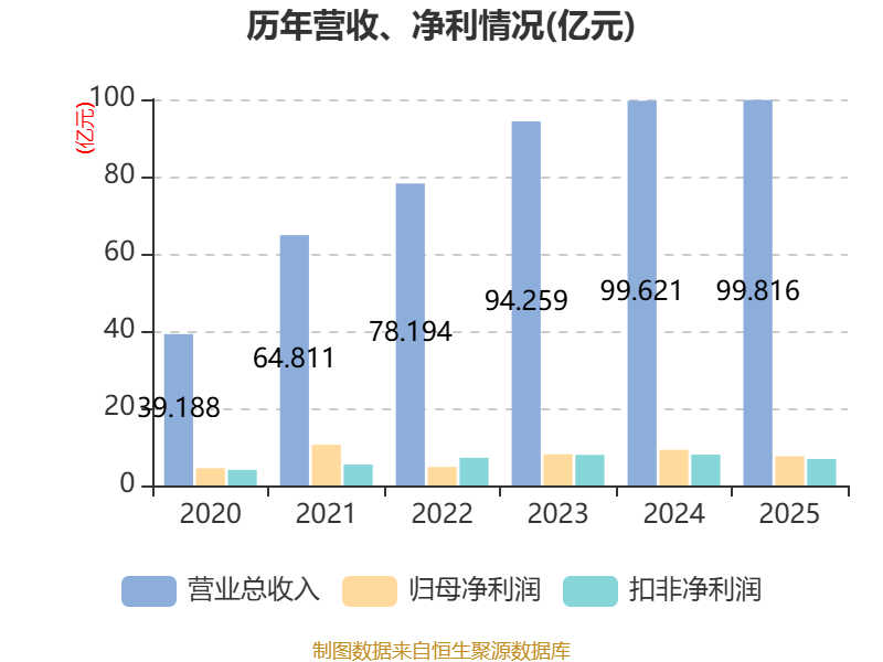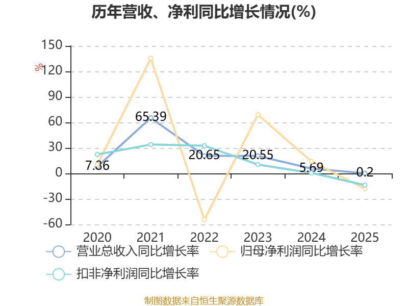 中证智能财讯江南化工(002226)4月24日披露2025年年度报告。2025年,公司实现营业总收入99.82亿元,同比增长0.20%;归母净利润7.58亿元,同比下降18.02%;扣非净利润6.87亿元,同比下降13.82%;经营活动产生的现金流量净额为11.86亿元,同比增长4.64%;报告期内,江南化工基本每股收益为0.286元,加权平均净资产收益率为7.64%。公司2025年度分配预案为:拟向全体股东每10股派现0.88元(含税)。