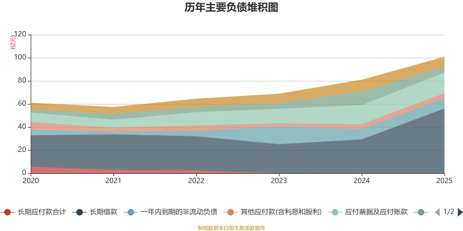 负债重大变化方面,截至2025年末,公司长期借款较上年末增加91.99%,占公司总资产比重上升10.59个百分点;短期借款较上年末减少56.52%,占公司总资产比重下降3.8个百分点;合同负债较上年末减少49.88%,占公司总资产比重下降0.64个百分点;一年内到期的非流动负债较上年末减少1.05%,占公司总资产比重下降0.57个百分点。
