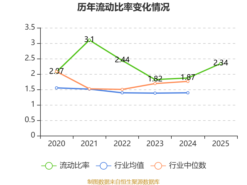 2025年,公司流动比率为2.34,速动比率为2.12。