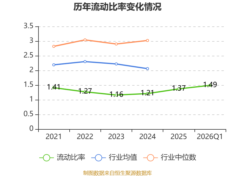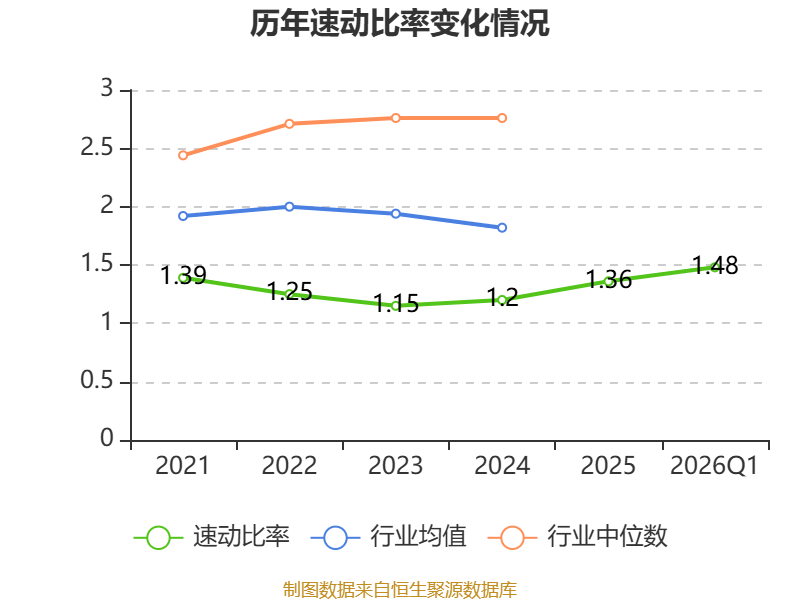 2026年第一季度,公司流动比率为1.49,速动比率为1.48。