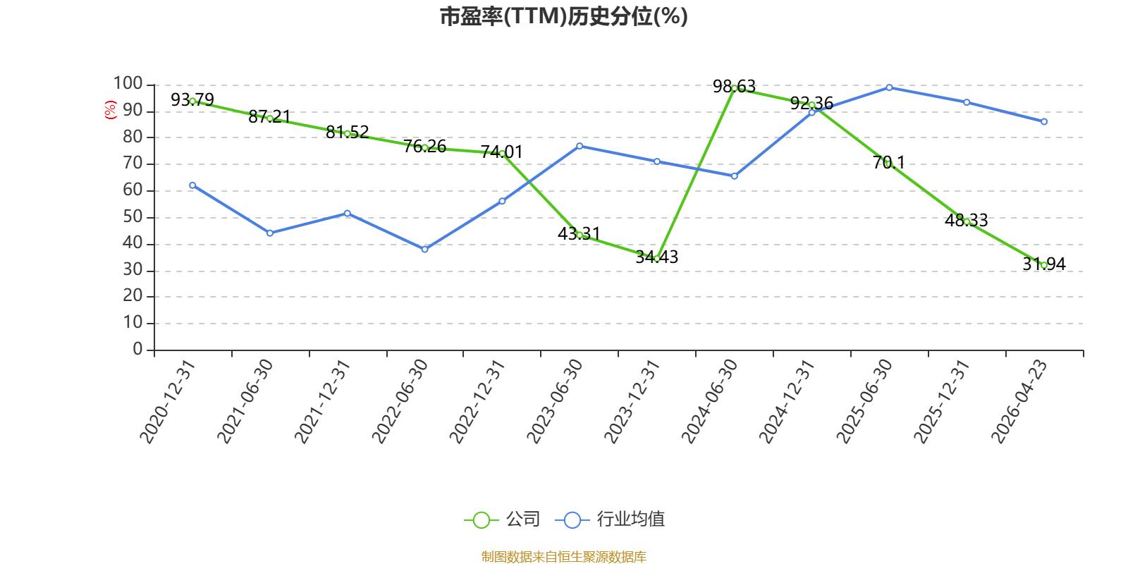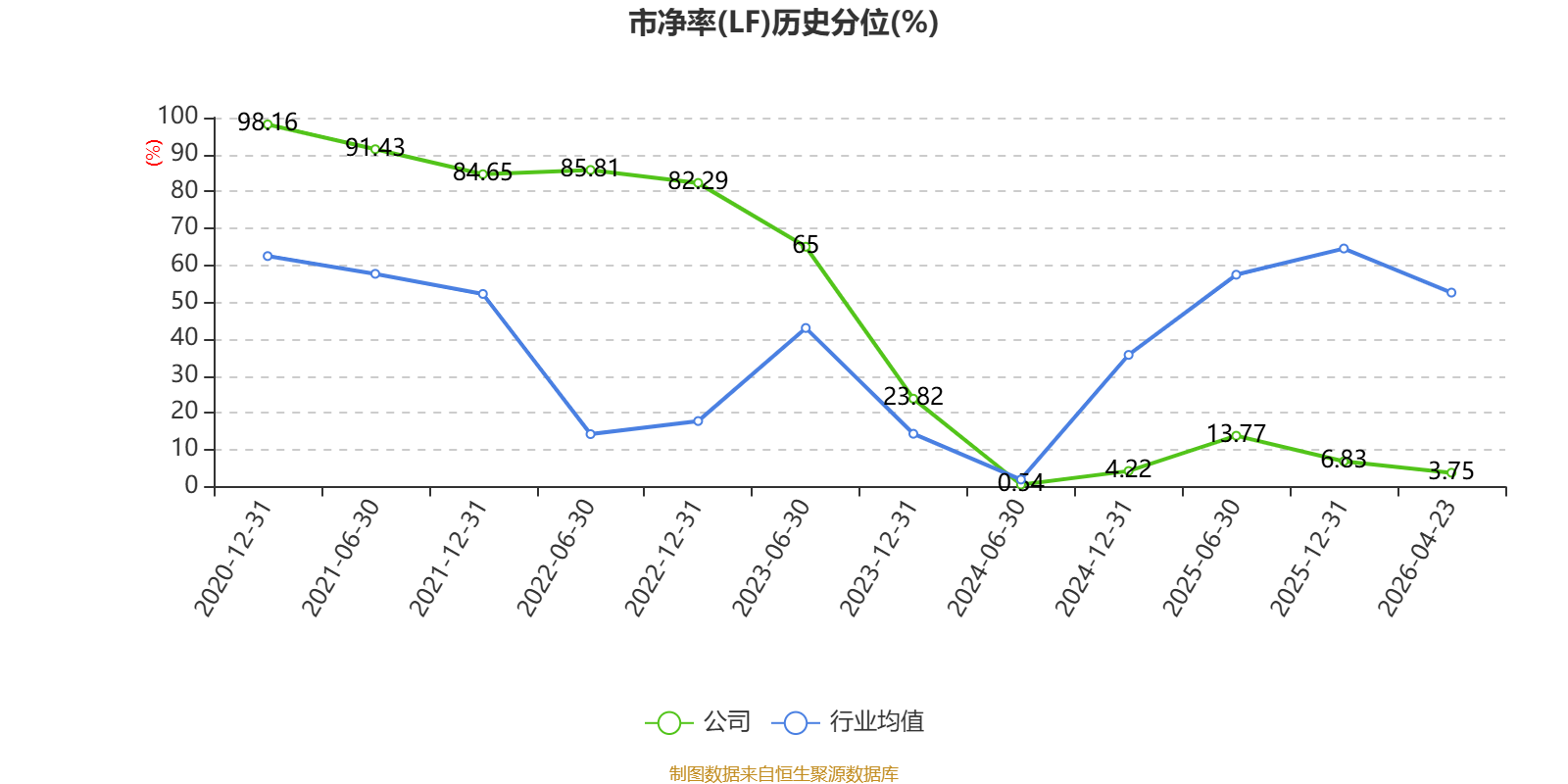 市盈率、市净率为负时,不显示当期分位数,会导致折线图中断。