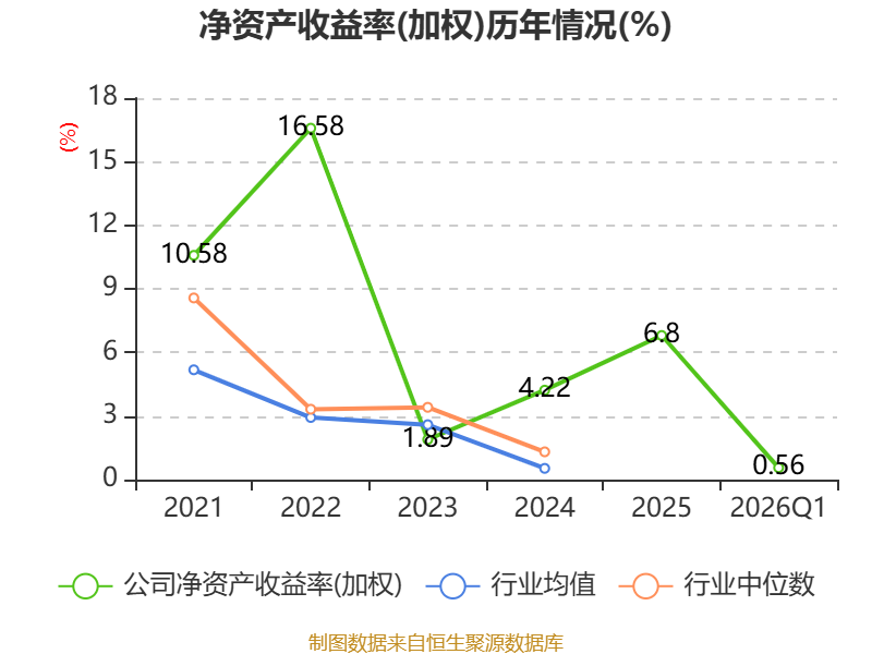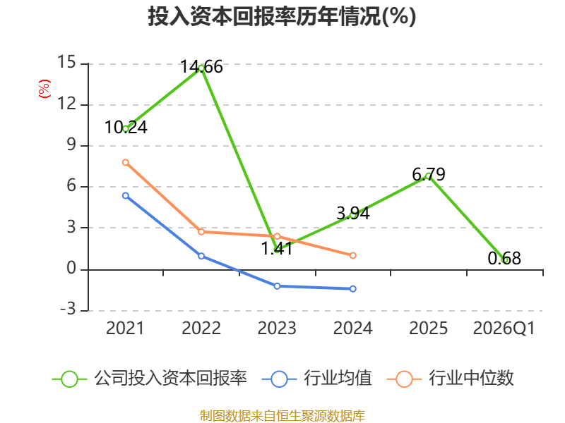 盈利能力方面, 2026年一季度公司加权平均净资产收益率为0.56%,同比上升0.06个百分点。公司2026年第一季度投入资本回报率为0.68%,较上年同期上升0.12个百分点。