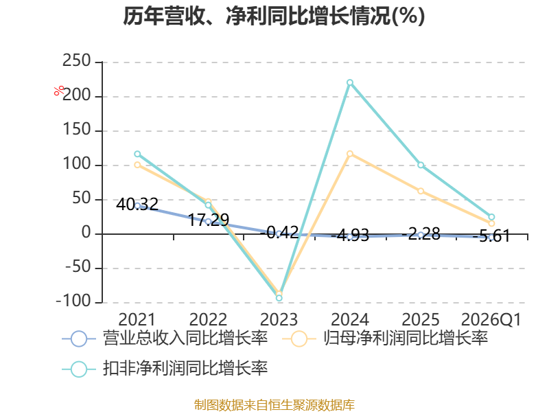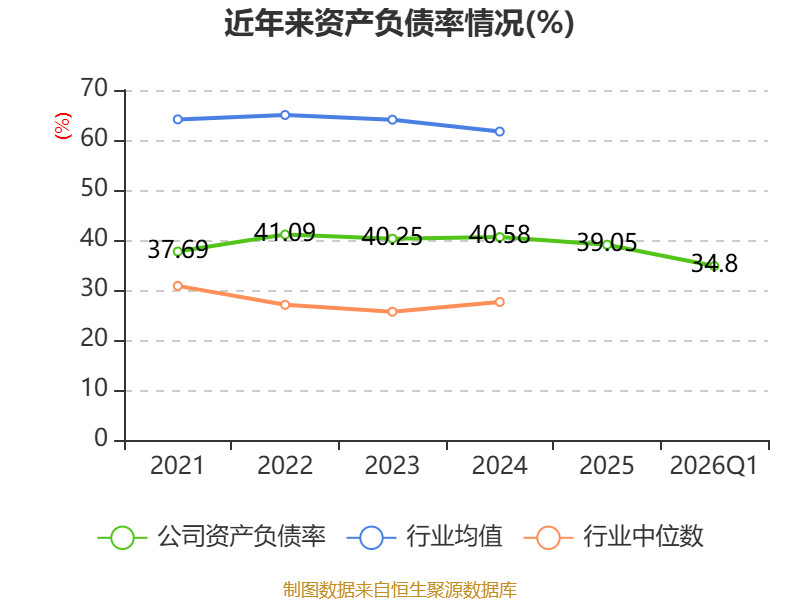 负债重大变化方面,截至2026年一季度末,公司合同负债较上年末减少21.54%,占公司总资产比重下降3.97个百分点;应付票据及应付账款较上年末减少15.97%,占公司总资产比重下降0.53个百分点;应付职工薪酬较上年末减少0.67%,占公司总资产比重上升0.43个百分点;应交税费较上年末减少31.45%,占公司总资产比重下降0.21个百分点。