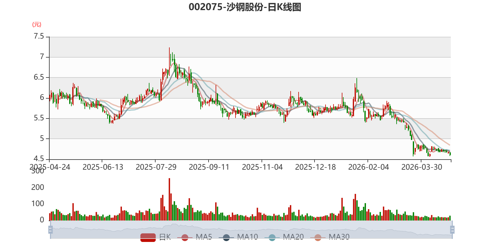 中证智能财讯沙钢股份(002075)4月24日披露2026年第一季度报告。公司实现营业总收入32.03亿元,同比下降8.36%;归母净利润5136.41万元,同比下降25.19%;扣非净利润2922.79万元,同比下降40.54%;经营活动产生的现金流量净额为4.03亿元,同比下降47.82%;报告期内,沙钢股份基本每股收益为0.0234元,加权平均净资产收益率为0.78%。