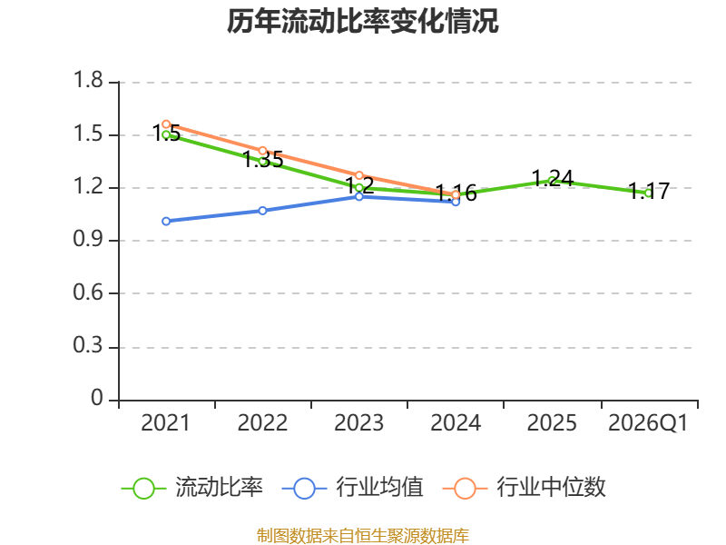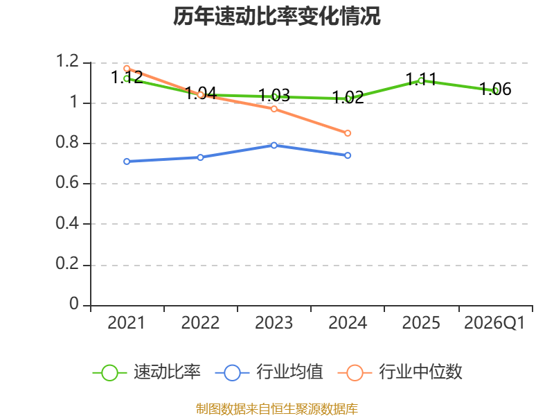 2026年第一季度,公司流动比率为1.17,速动比率为1.06。