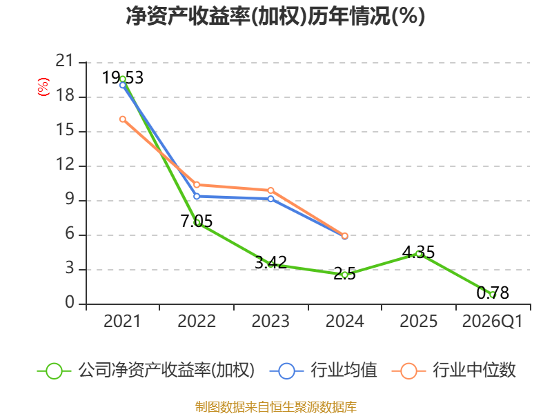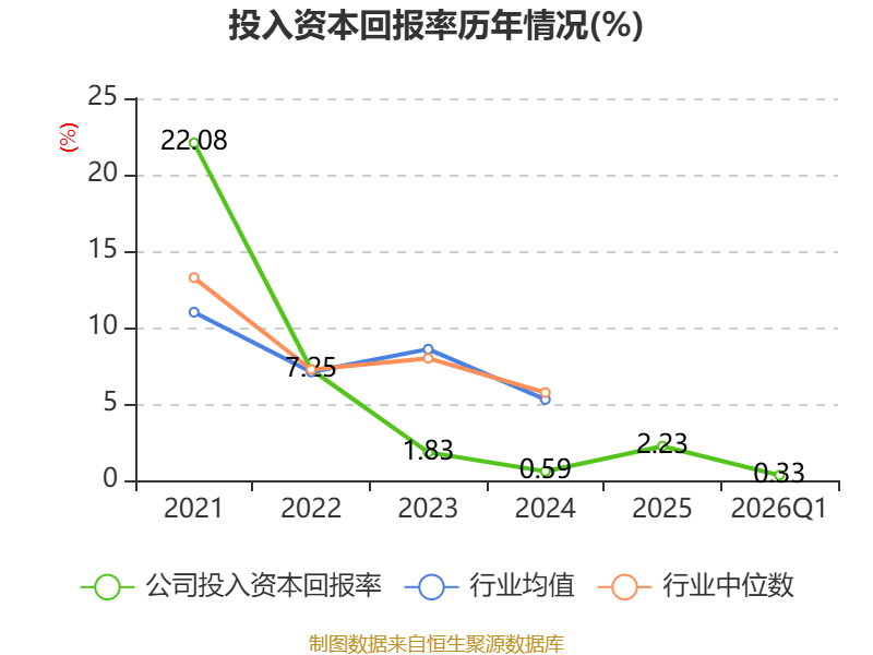 盈利能力方面, 2026年一季度公司加权平均净资产收益率为0.78%,同比下降0.29个百分点。公司2026年第一季度投入资本回报率为0.33%,较上年同期下降0.19个百分点。