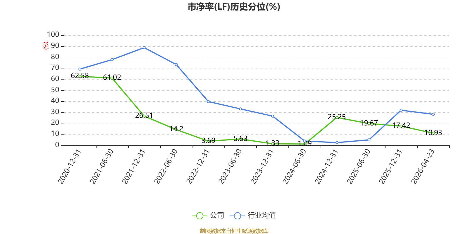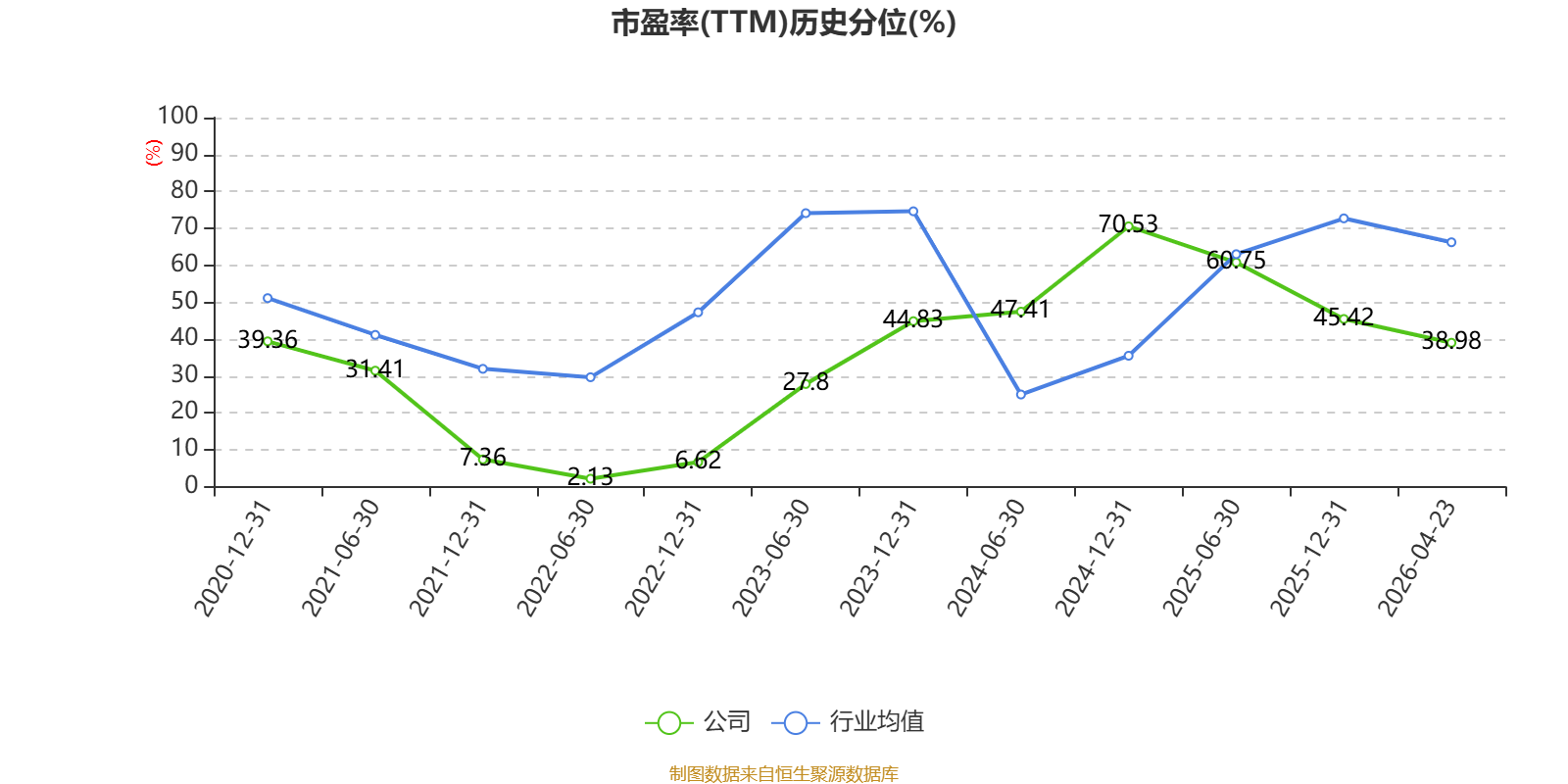 市盈率、市净率为负时,不显示当期分位数,会导致折线图中断。