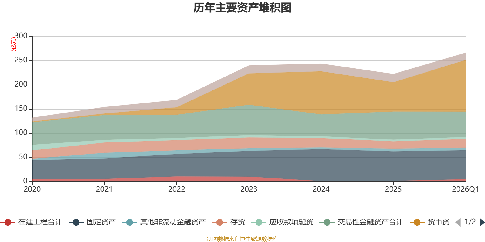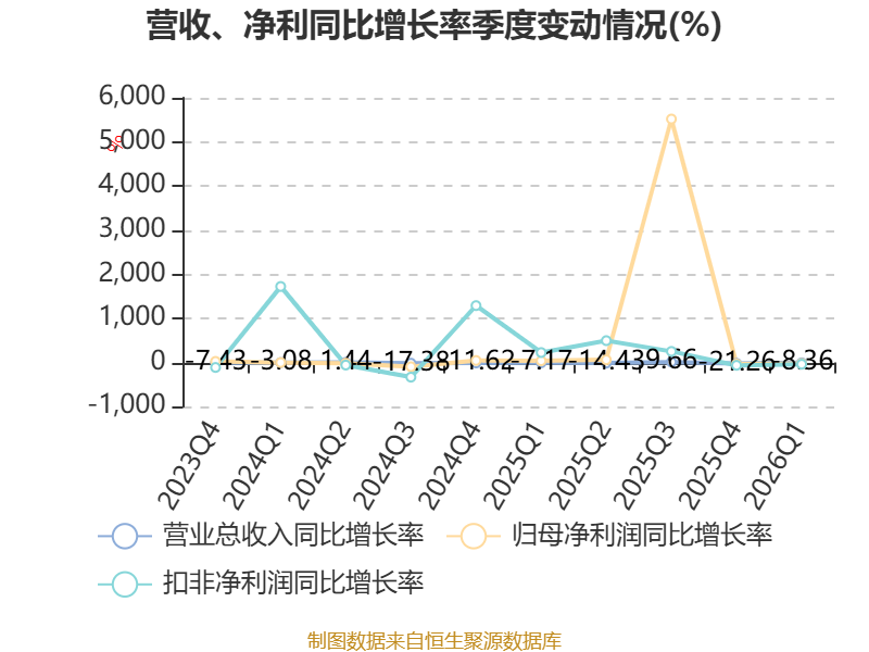资产重大变化方面,截至2026年一季度末,公司货币资金较上年末增加76.04%,占公司总资产比重上升12.79个百分点;交易性金融资产合计较上年末减少10.19%,占公司总资产比重下降6.55个百分点;固定资产较上年末减少1.98%,占公司总资产比重下降4.98个百分点;在建工程合计较上年末增加262.92%,占公司总资产比重上升1.21个百分点。