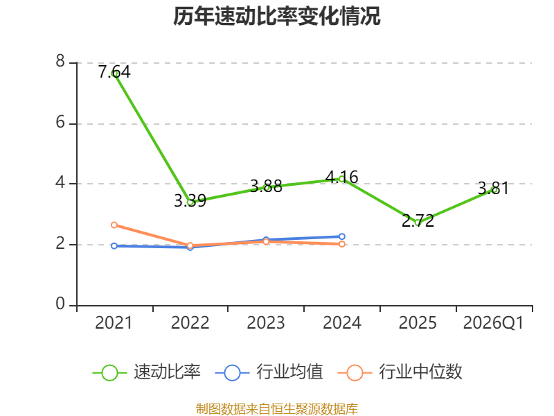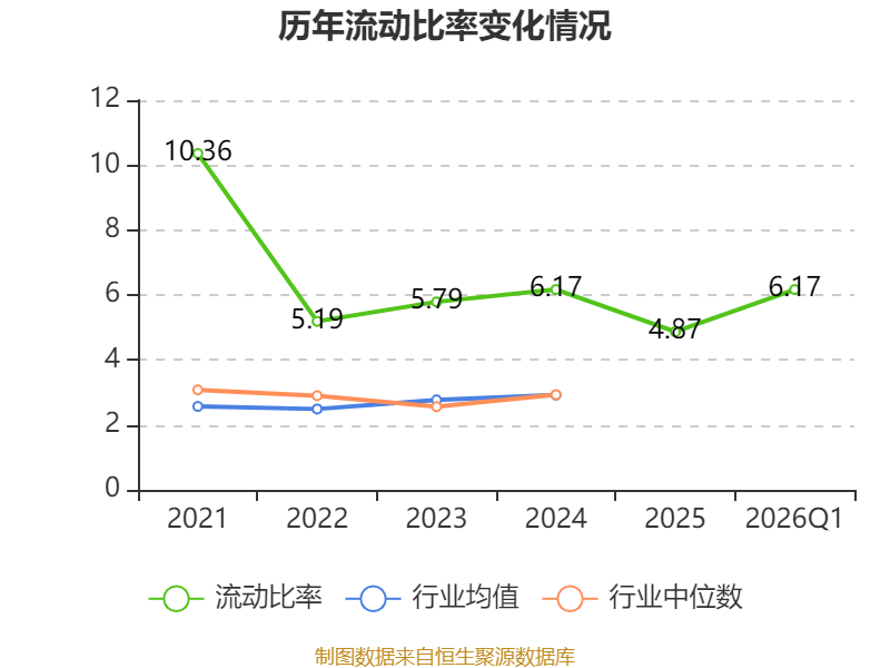 2026年第一季度,公司流动比率为6.17,速动比率为3.81。