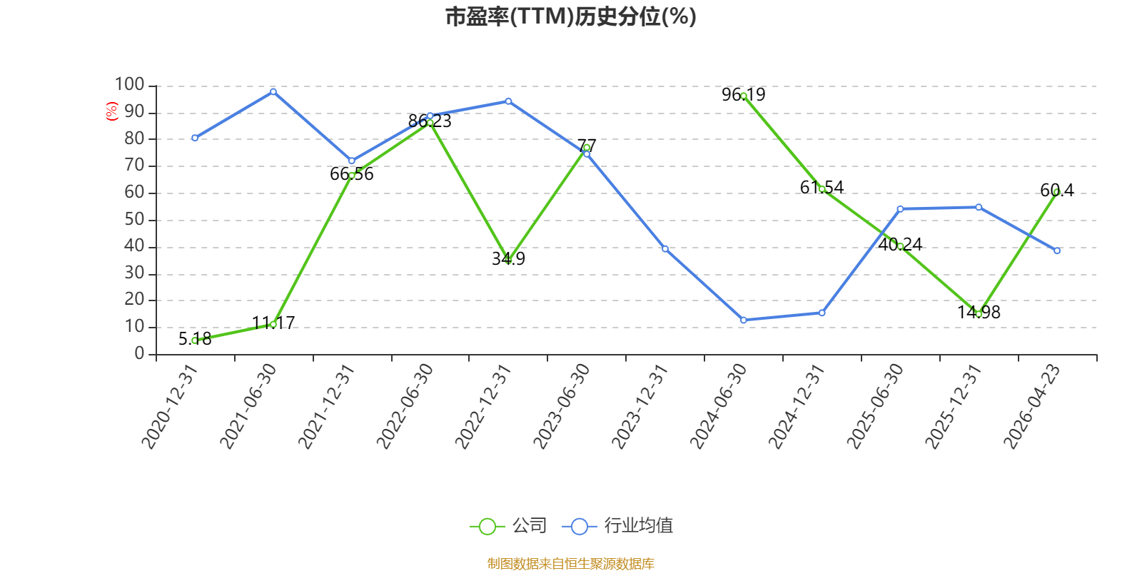 市盈率、市净率为负时,不显示当期分位数,会导致折线图中断。