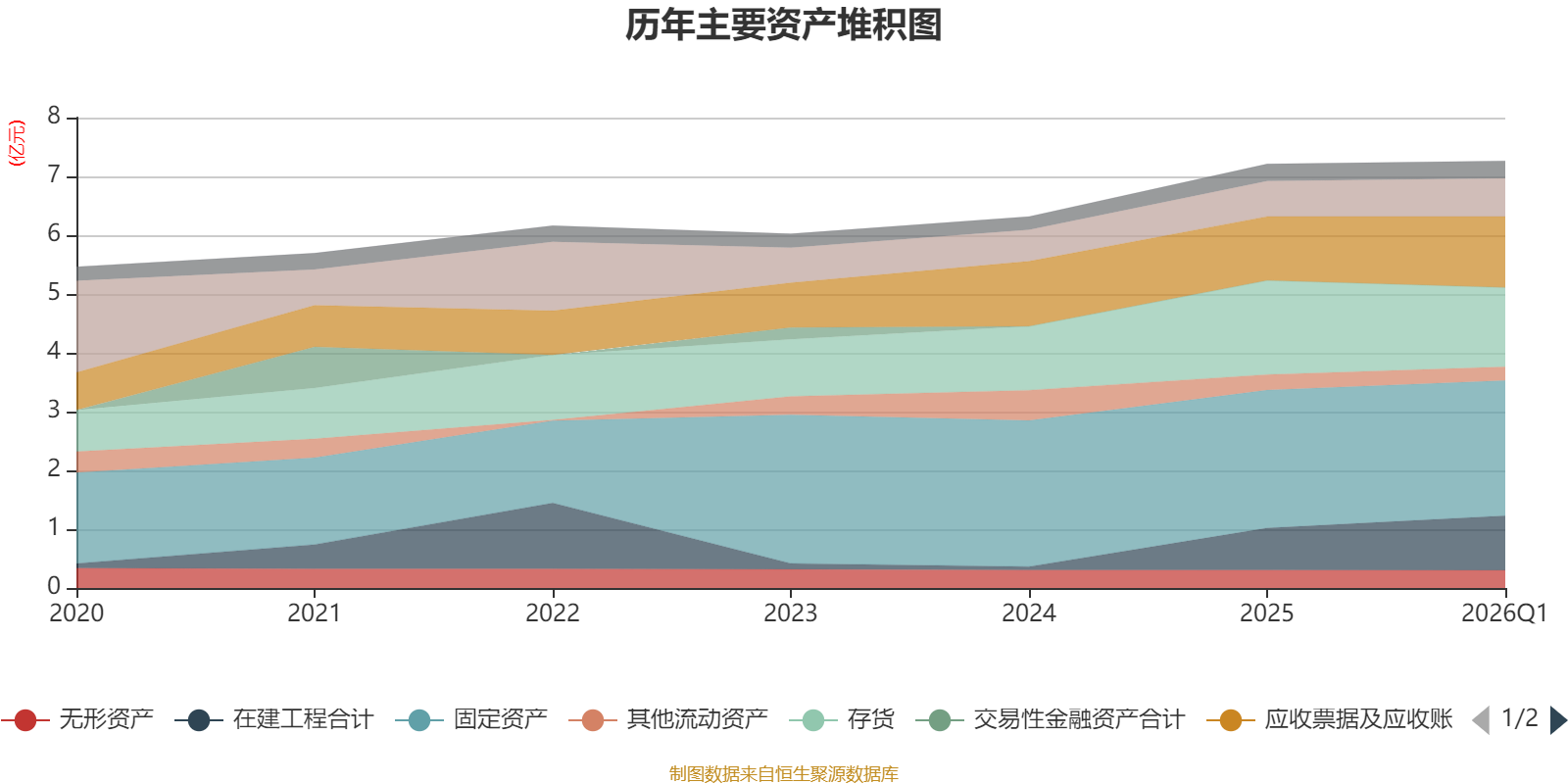 资产重大变化方面,截至2026年一季度末,公司存货较上年末减少15.67%,占公司总资产比重下降3.6个百分点;在建工程合计较上年末增加29.66%,占公司总资产比重上升2.85个百分点;应收票据及应收账款较上年末增加10.86%,占公司总资产比重上升1.52个百分点;固定资产较上年末减少2.02%,占公司总资产比重下降0.88个百分点。