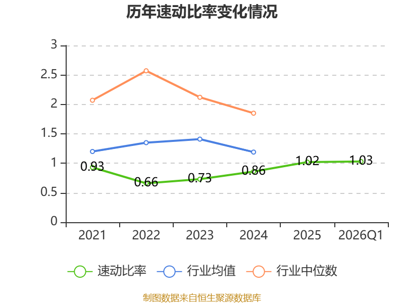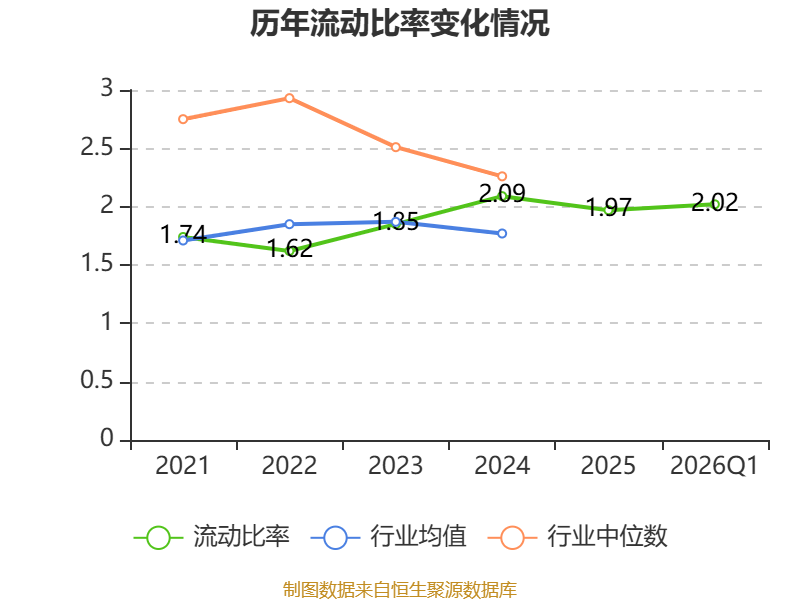 2026年第一季度,公司流动比率为2.02,速动比率为1.03。