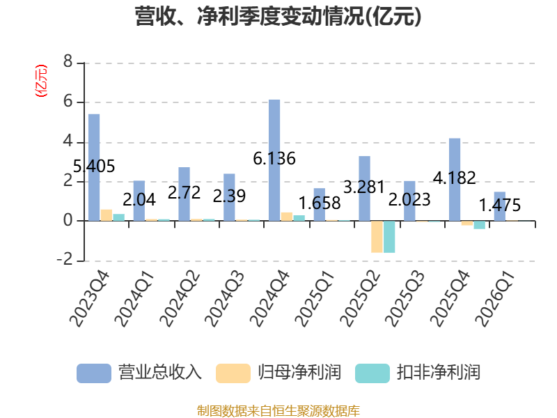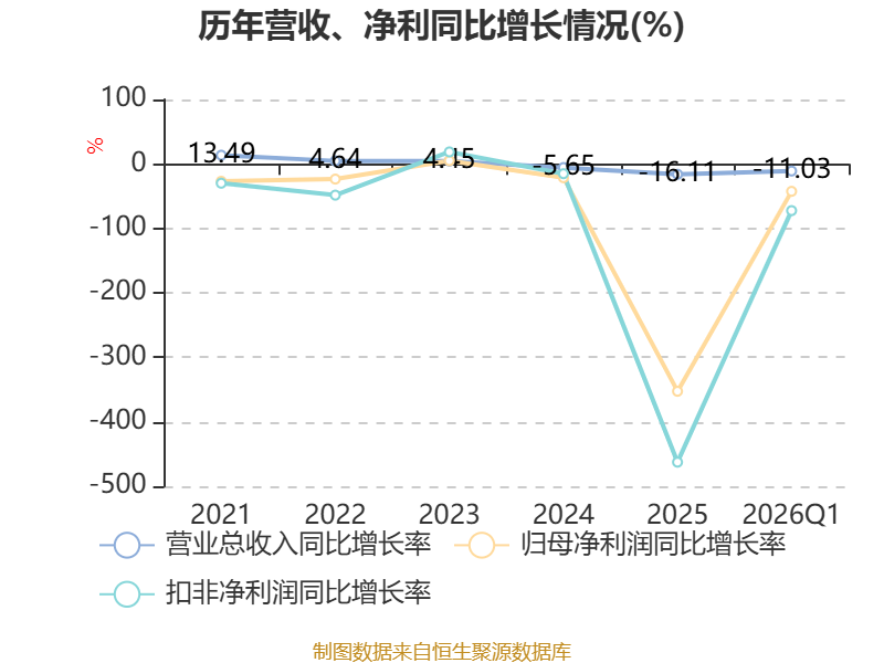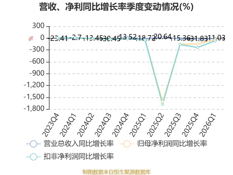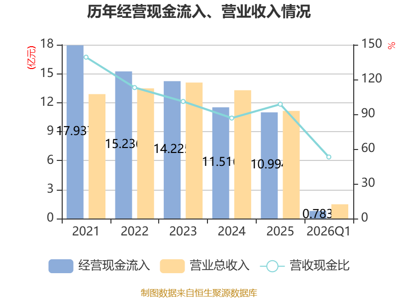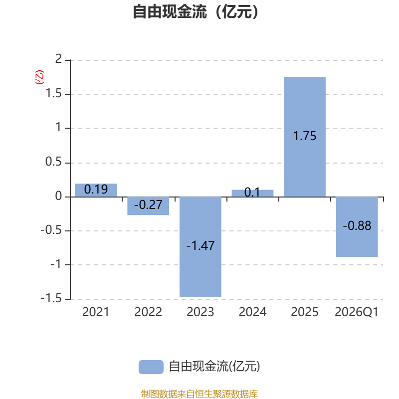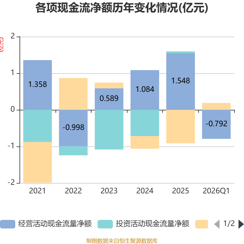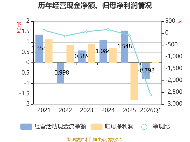 截至2026年一季度末,公司经营活动现金流净额为-7916.63万元,同比减少2489.43万元;筹资活动现金流净额1890.27万元,同比减少2361.9万元;投资活动现金流净额-24.92万元,上年同期为-77.86万元。