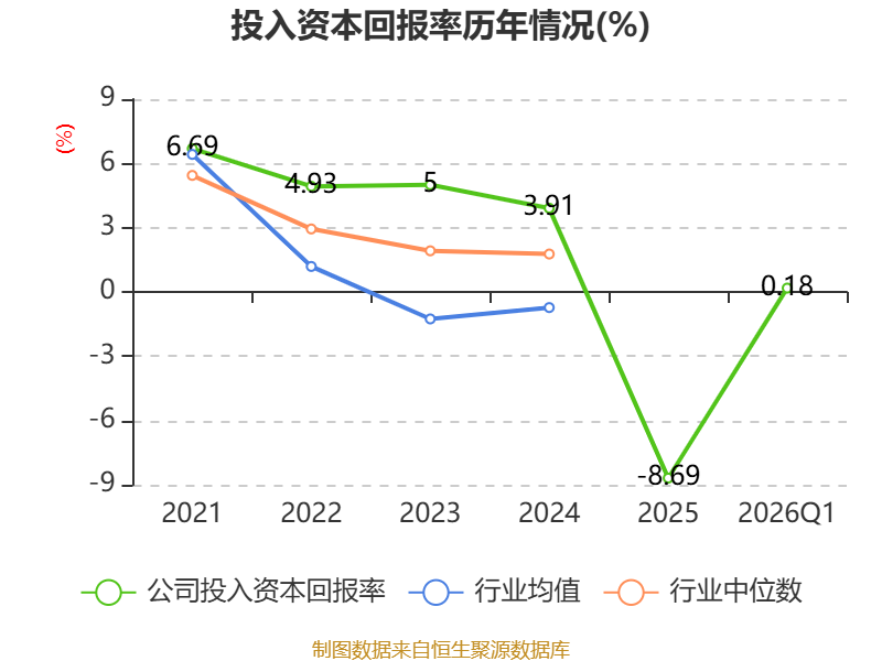 盈利能力方面, 2026年一季度公司加权平均净资产收益率为0.18%,同比下降0.1个百分点。公司2026年第一季度投入资本回报率为0.18%,较上年同期下降0.1个百分点。