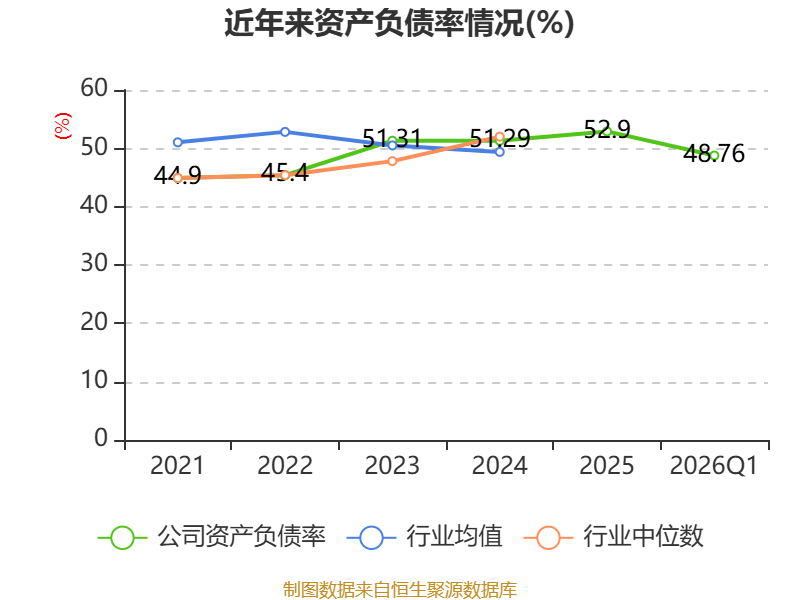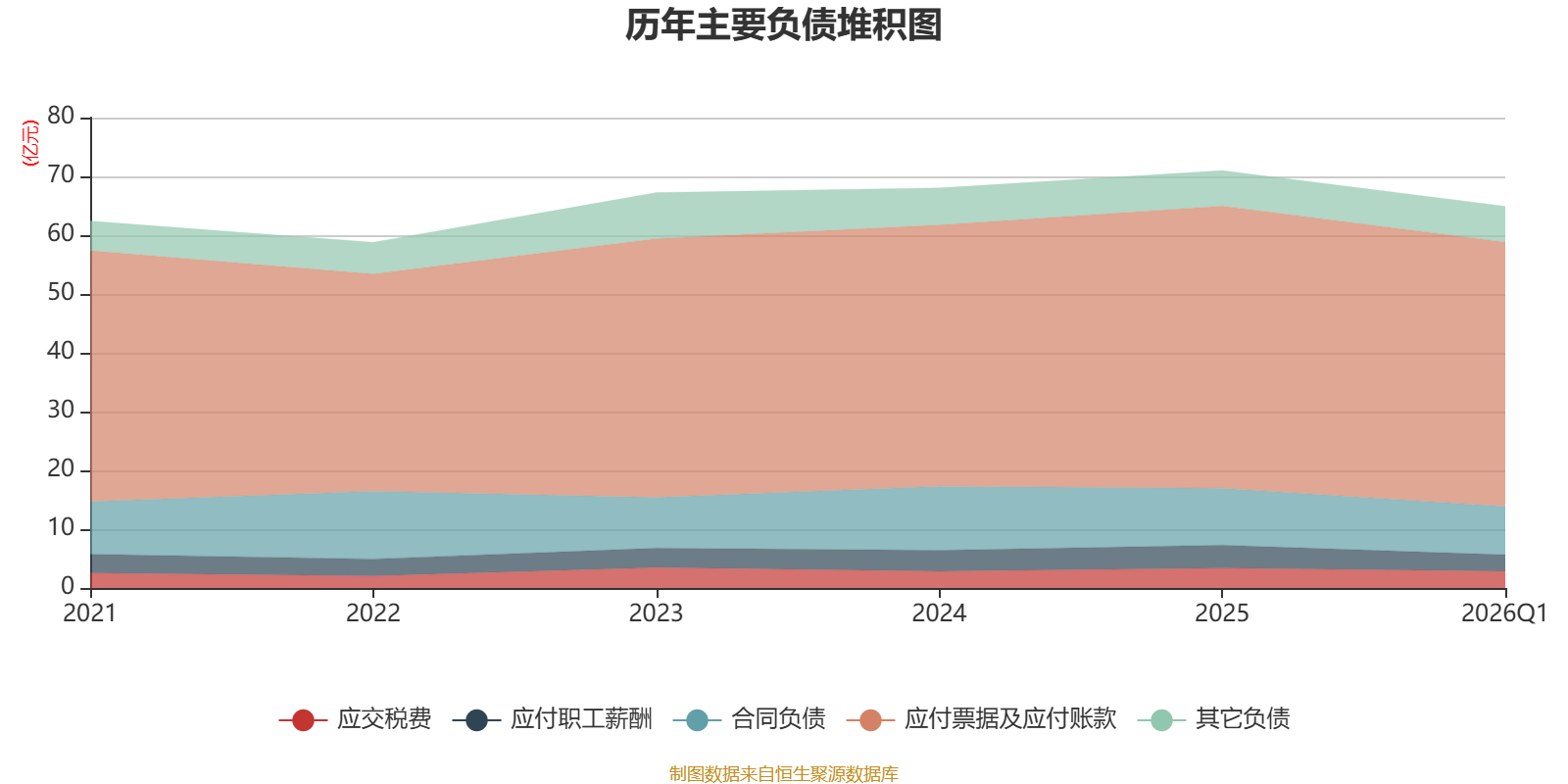 负债重大变化方面,截至2026年一季度末,公司应付票据及应付账款较上年末减少6.36%,占公司总资产比重下降2.01个百分点;合同负债较上年末减少14.99%,占公司总资产比重下降1.03个百分点;应付职工薪酬较上年末减少28.89%,占公司总资产比重下降0.83个百分点;应交税费较上年末减少15.09%,占公司总资产比重下降0.36个百分点。