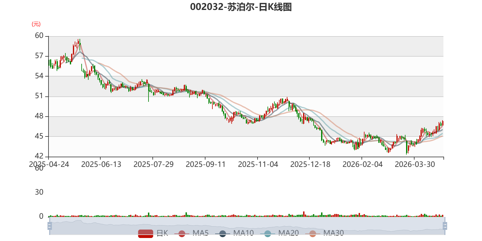 中证智能财讯苏泊尔(002032)4月24日披露2026年第一季度报告。公司实现营业总收入58.82亿元,同比增长1.65%;归母净利润5.05亿元,同比增长1.68%;扣非净利润4.89亿元,同比增长1.01%;经营活动产生的现金流量净额为3.65亿元,同比下降37.48%;报告期内,苏泊尔基本每股收益为0.634元,加权平均净资产收益率为7.73%。