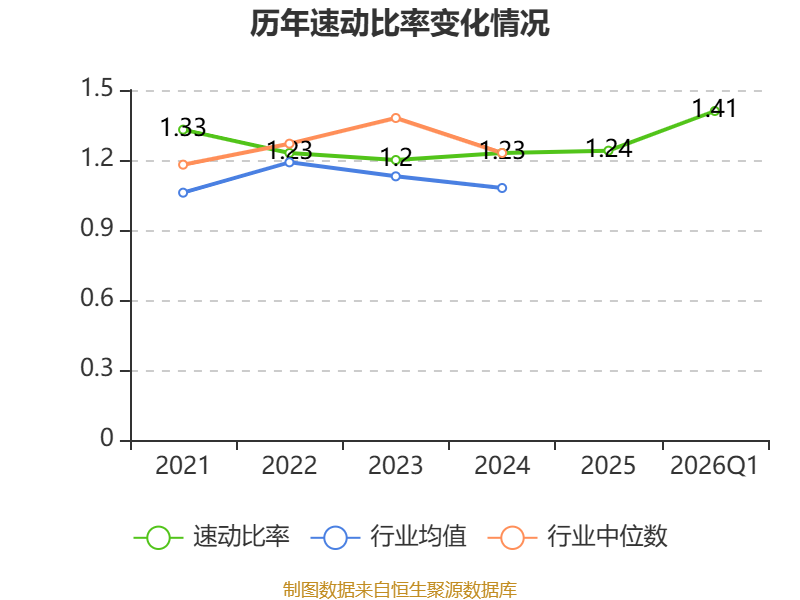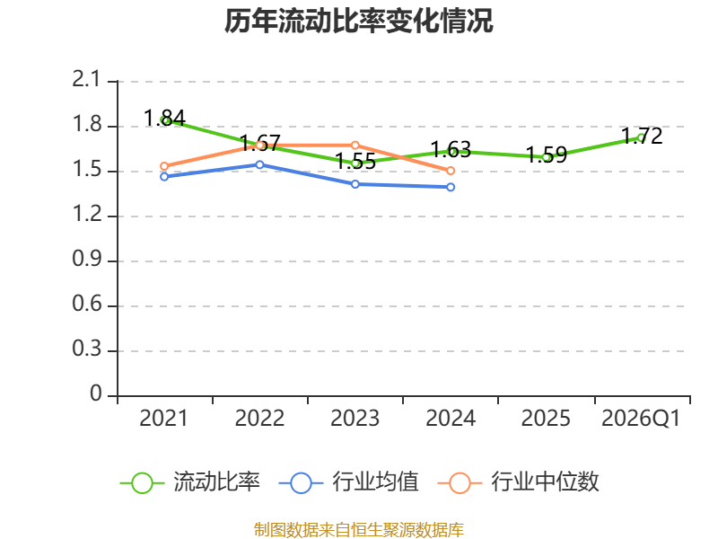 2026年第一季度,公司流动比率为1.72,速动比率为1.41。