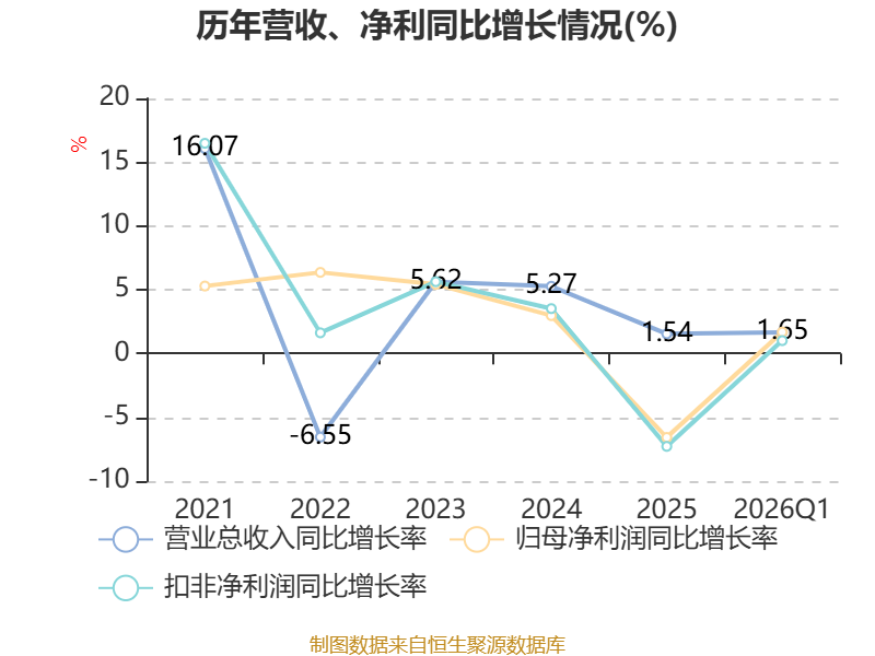 盈利能力方面, 2026年一季度公司加权平均净资产收益率为7.73%,同比上升0.29个百分点。公司2026年第一季度投入资本回报率为7.39%,较上年同期上升0.32个百分点。