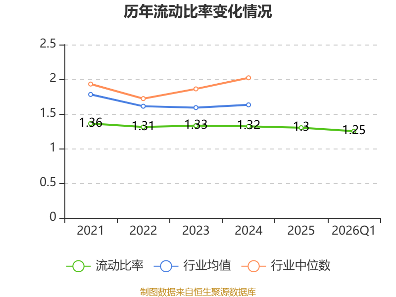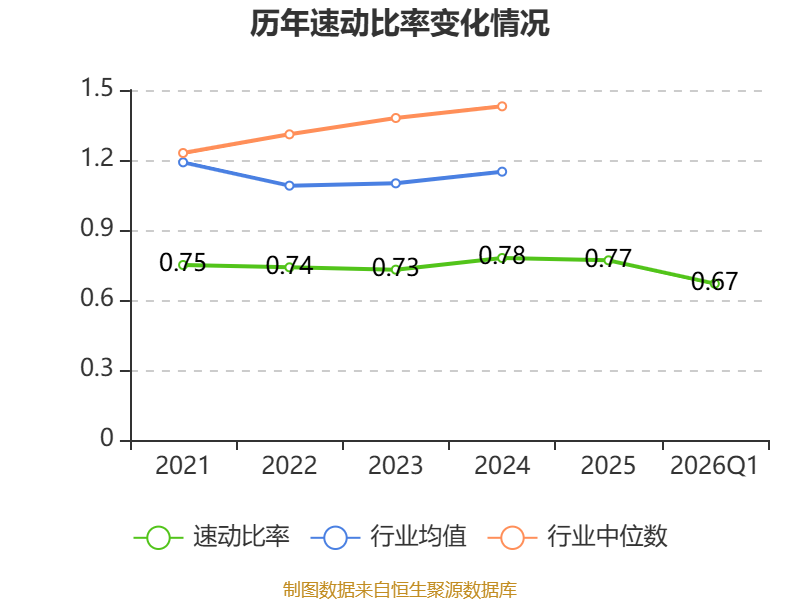 2026年第一季度,公司流动比率为1.25,速动比率为0.67。