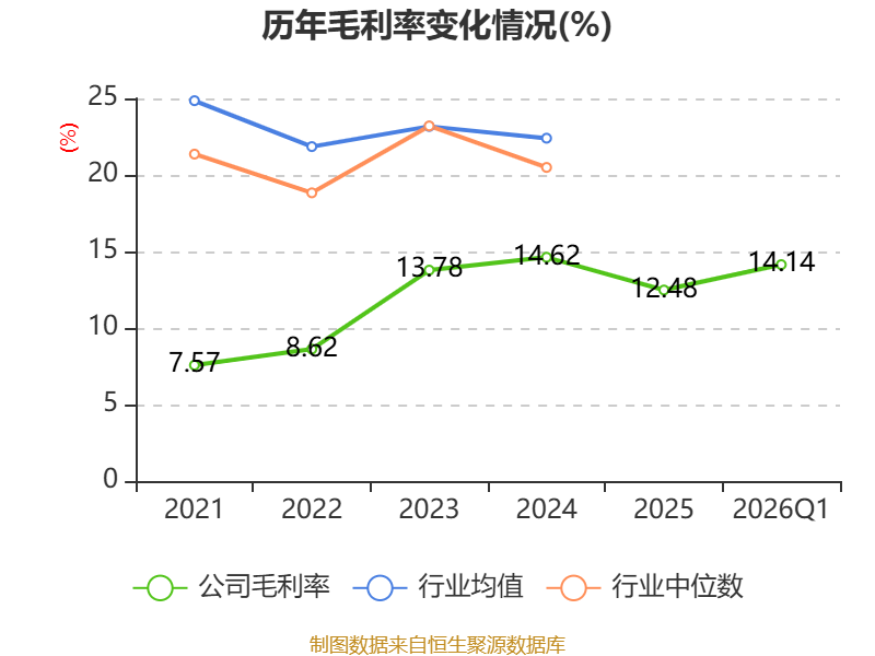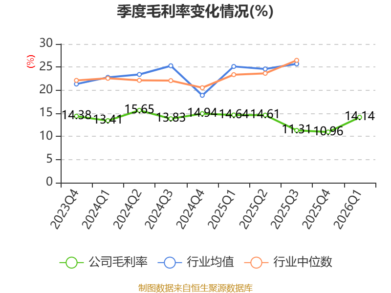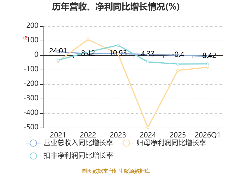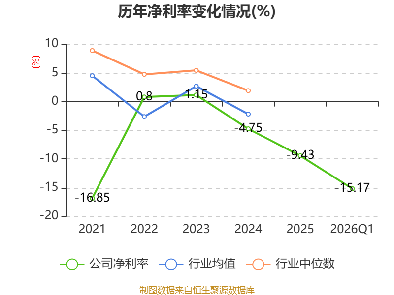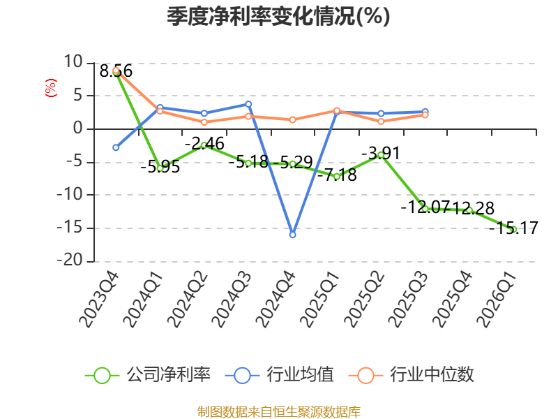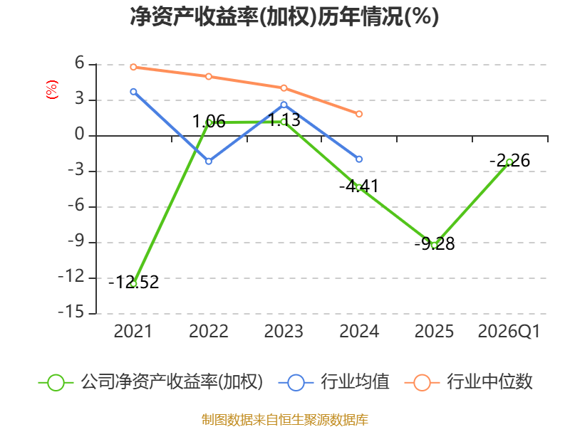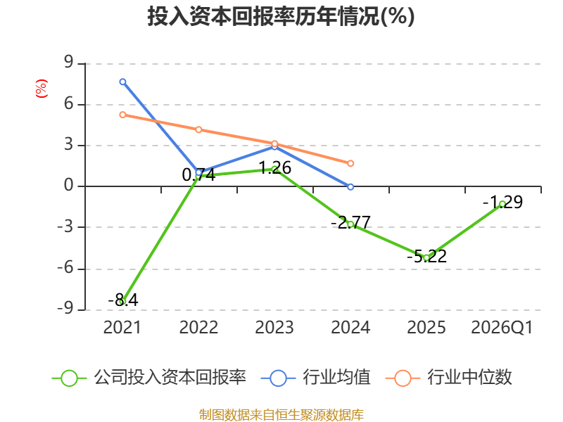 盈利能力方面, 2026年一季度公司加权平均净资产收益率为-2.26%,同比下降1.12个百分点。公司2026年第一季度投入资本回报率为-1.29%,较上年同期下降0.79个百分点。