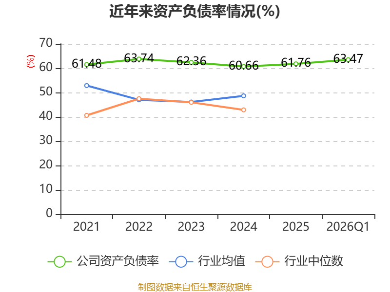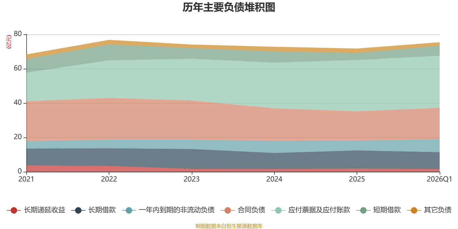 负债重大变化方面,截至2026年一季度末,公司短期借款较上年末增加44.67%,占公司总资产比重上升1.44个百分点;一年内到期的非流动负债较上年末增加32.11%,占公司总资产比重上升1.43个百分点;长期借款较上年末减少7.31%,占公司总资产比重下降0.86个百分点;合同负债较上年末增加7%,占公司总资产比重上升0.68个百分点。