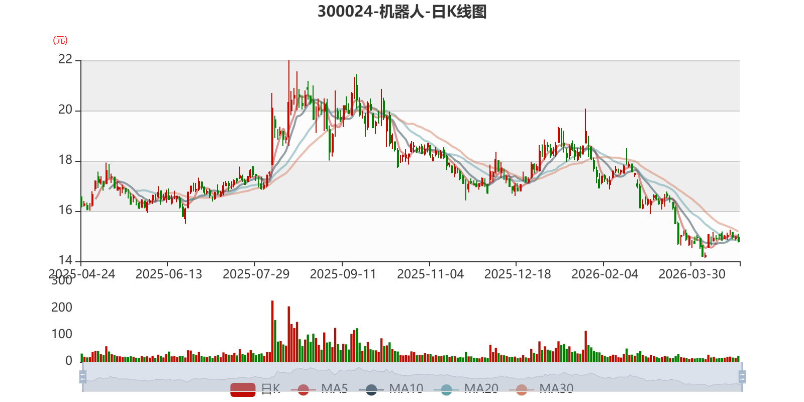 以4月23日收盘价计算,机器人目前市盈率(TTM)约为-52.58倍,市净率(LF)约5.72倍,市销率(TTM)约5.69倍。