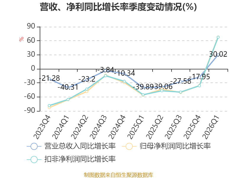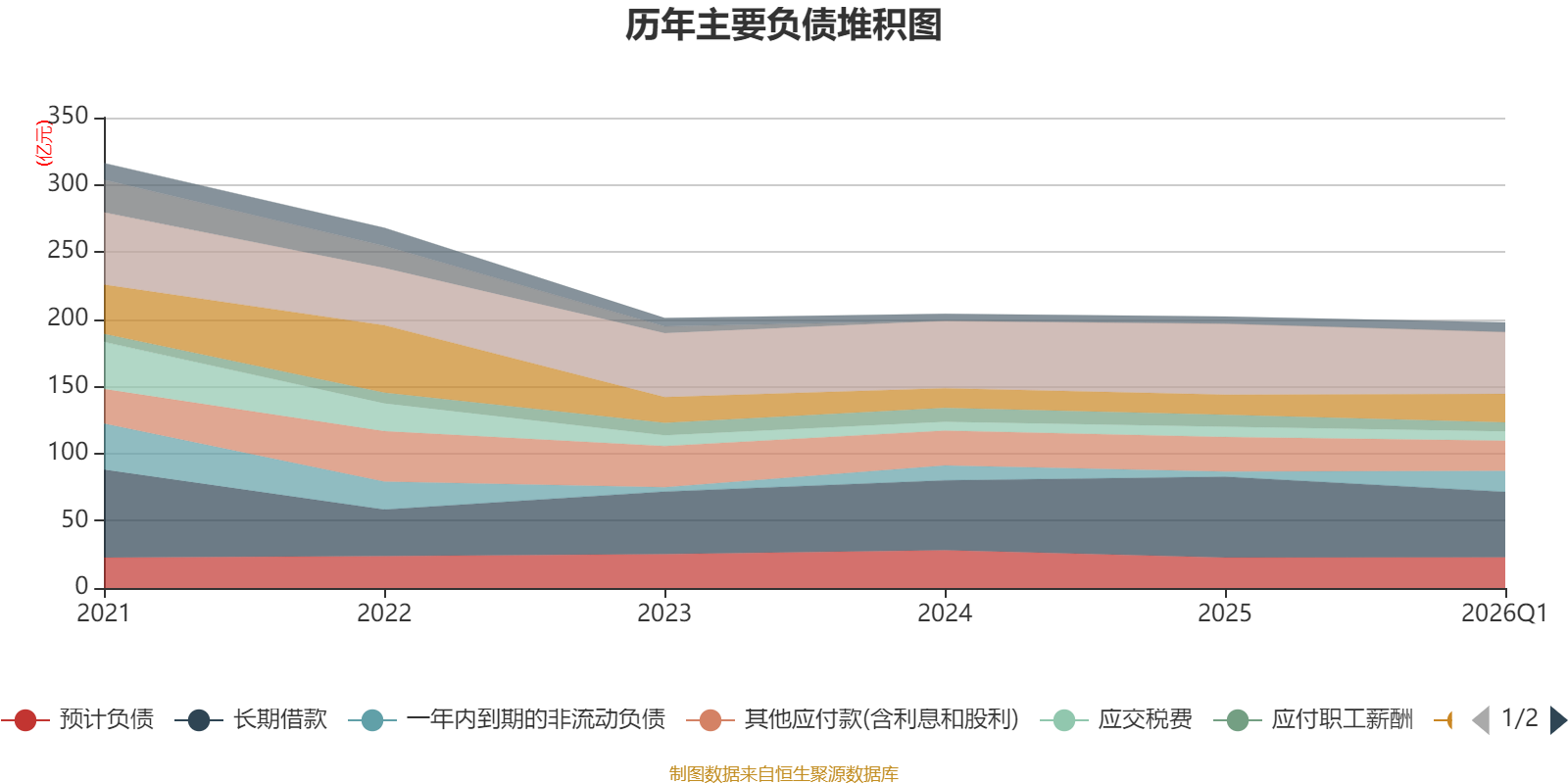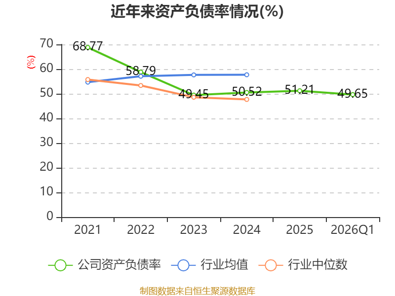 负债重大变化方面,截至2026年一季度末,公司长期借款较上年末减少18.97%,占公司总资产比重下降3个百分点;一年内到期的非流动负债较上年末增加297.85%,占公司总资产比重上升2.92个百分点;应付票据及应付账款较上年末减少12.67%,占公司总资产比重下降1.81个百分点;合同负债较上年末增加41.45%,占公司总资产比重上升1.52个百分点。