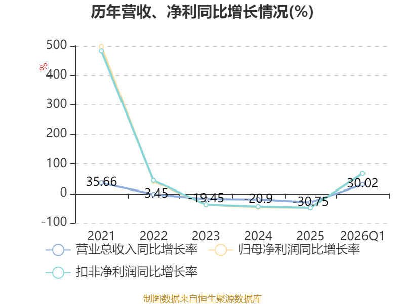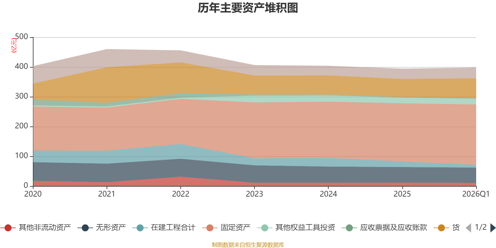资产重大变化方面,截至2026年一季度末,公司在建工程合计较上年末减少51.89%,占公司总资产比重下降2.54个百分点;固定资产较上年末增加3.99%,占公司总资产比重上升1.51个百分点;货币资金较上年末增加8.84%,占公司总资产比重上升1.21个百分点;存货较上年末减少19.02%,占公司总资产比重下降0.43个百分点。