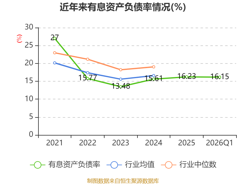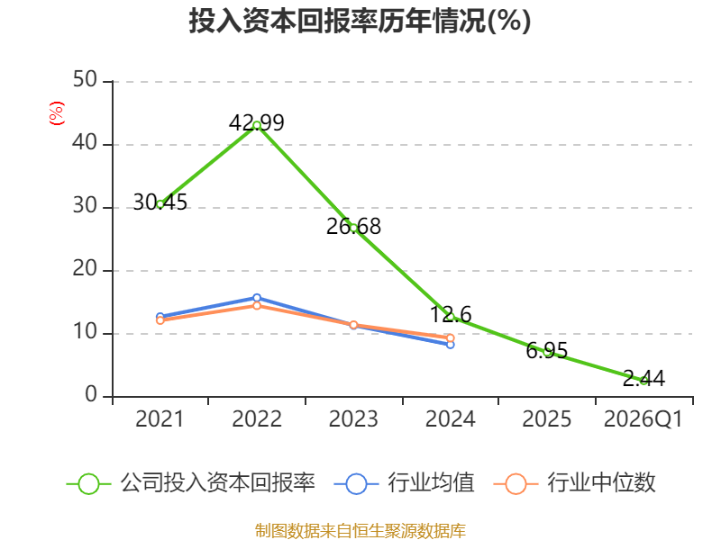 盈利能力方面, 2026年一季度公司加权平均净资产收益率为2.62%,同比上升1.09个百分点。公司2026年第一季度投入资本回报率为2.44%,较上年同期上升0.82个百分点。