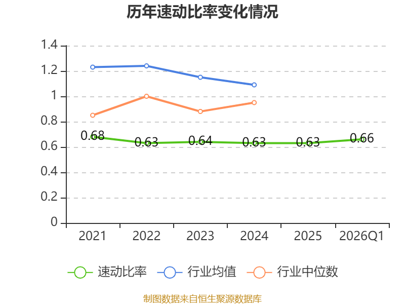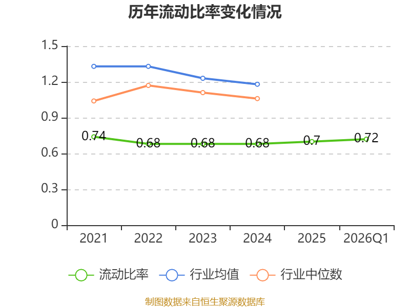 2026年第一季度,公司流动比率为0.72,速动比率为0.66。