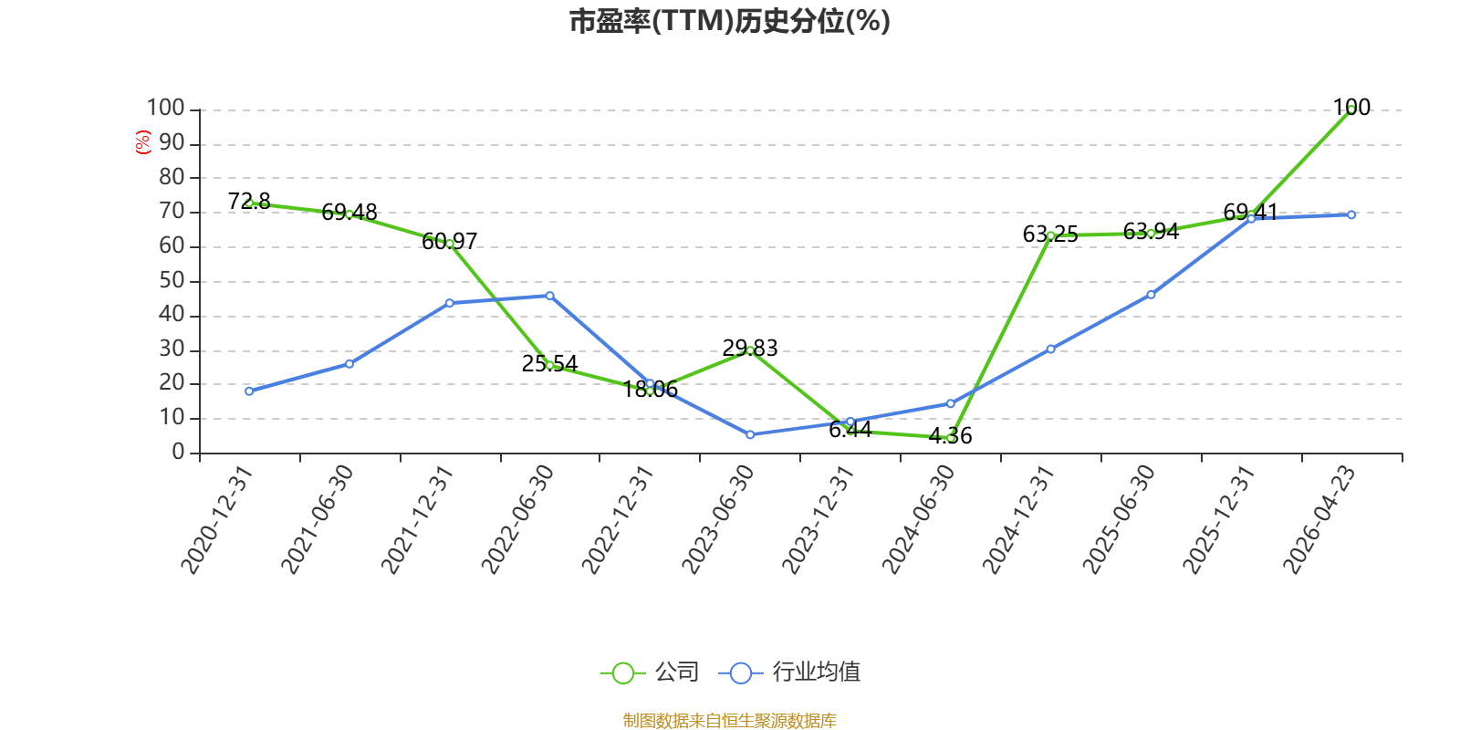 市盈率、市净率为负时,不显示当期分位数,会导致折线图中断。