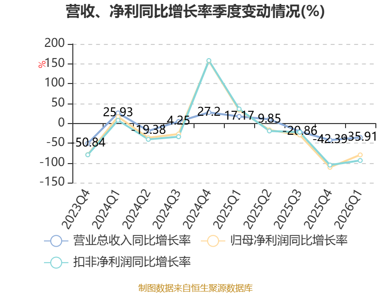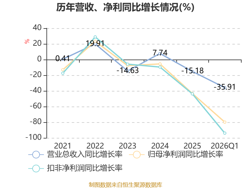 资产重大变化方面,截至2026年一季度末,公司货币资金较上年末减少14.99%,占公司总资产比重下降2.03个百分点;交易性金融资产合计较上年末增加2363.77%,占公司总资产比重上升1.72个百分点;应收票据及应收账款较上年末减少6.17%,占公司总资产比重下降0.98个百分点;存货较上年末增加13.14%,占公司总资产比重上升0.81个百分点。