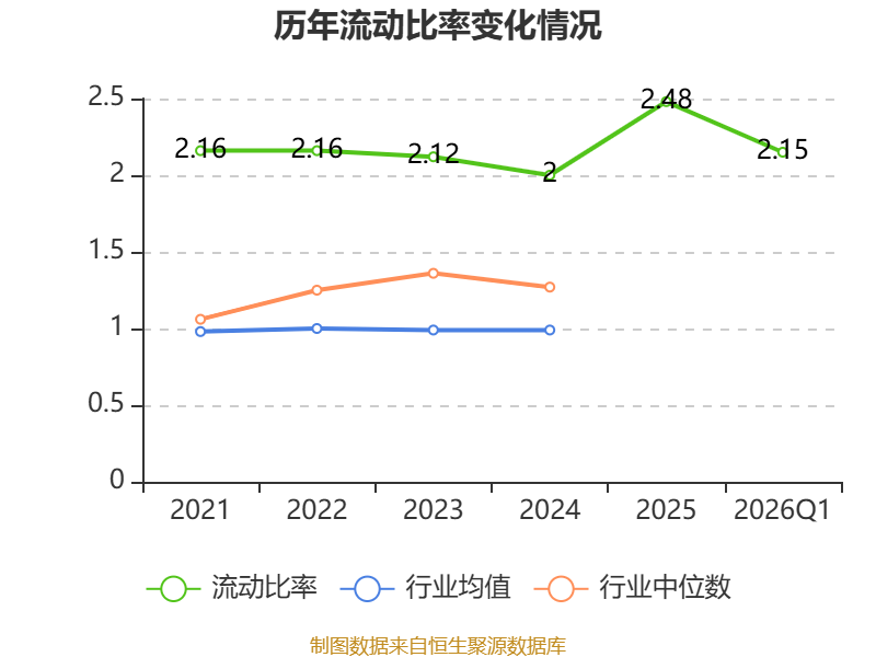 2026年第一季度,公司流动比率为2.15,速动比率为1.95。