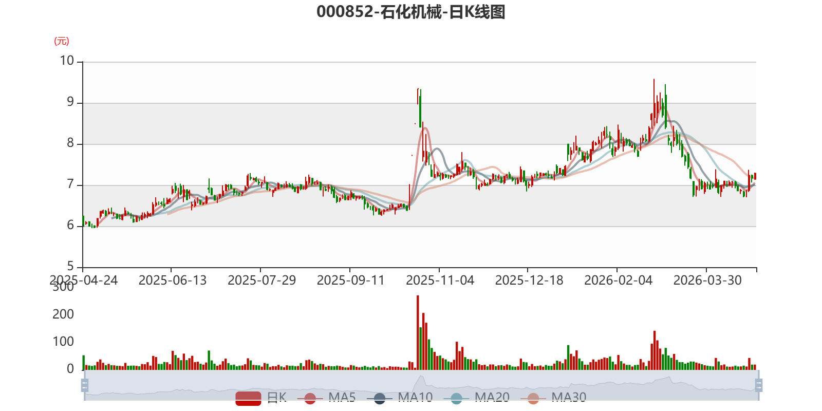 中证智能财讯石化机械(000852)4月24日披露2026年第一季度报告。公司实现营业总收入13.27亿元,同比下降13.84%;归母净利润亏损639.81万元,上年同期盈利584.61万元;扣非净利润亏损929.22万元,上年同期亏损713.86万元;经营活动产生的现金流量净额为-5.57亿元,上年同期为-2.31亿元;报告期内,石化机械基本每股收益为-0.0067元,加权平均净资产收益率为-0.20%。