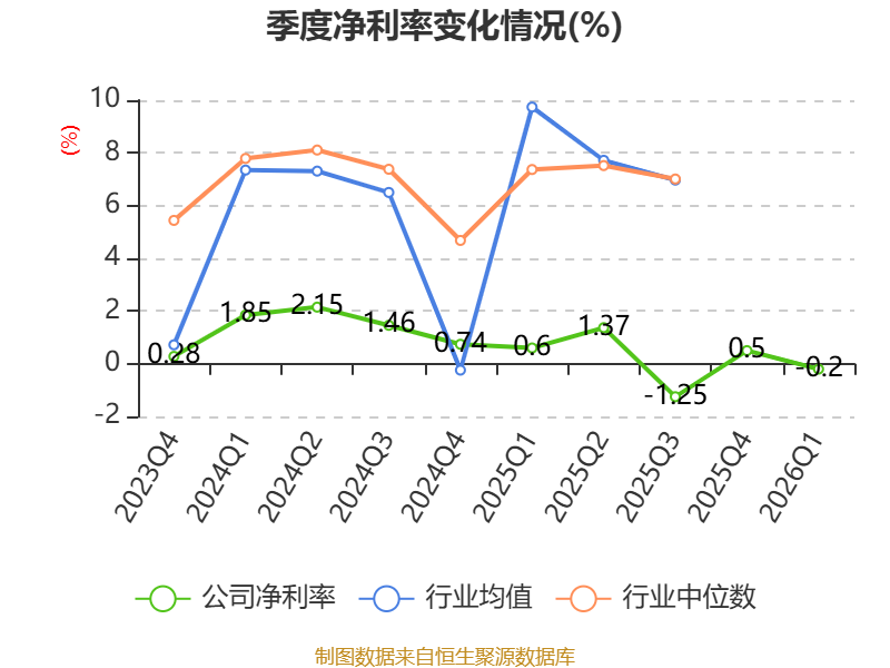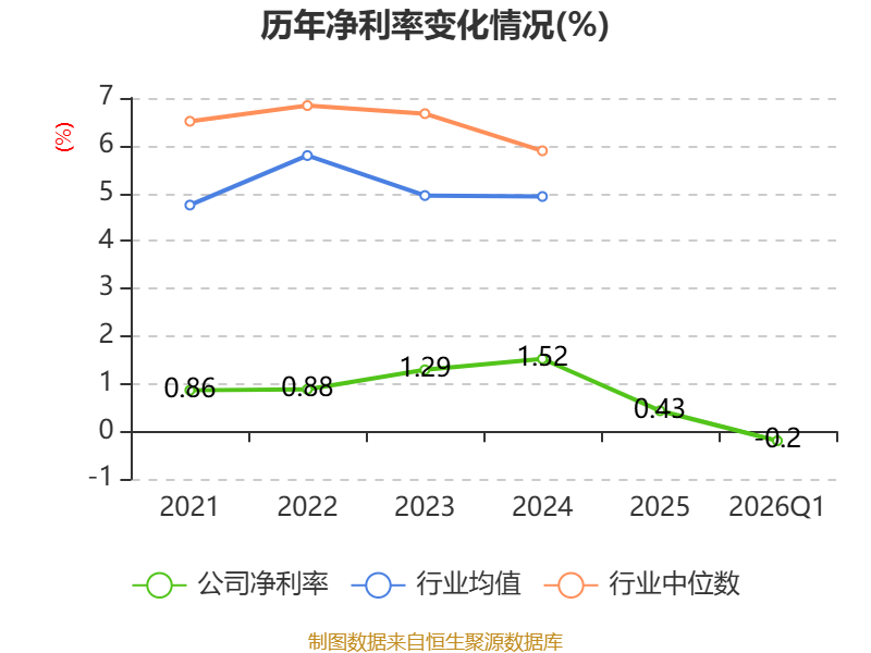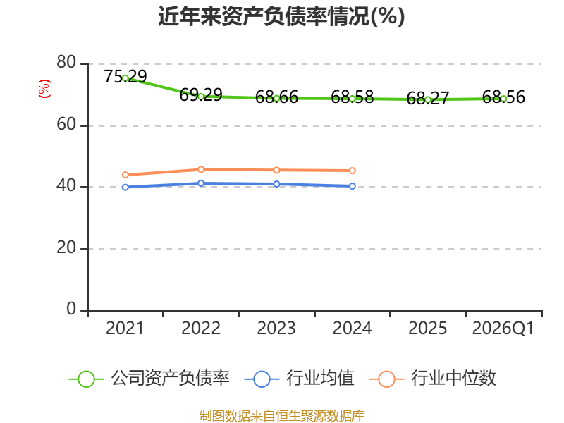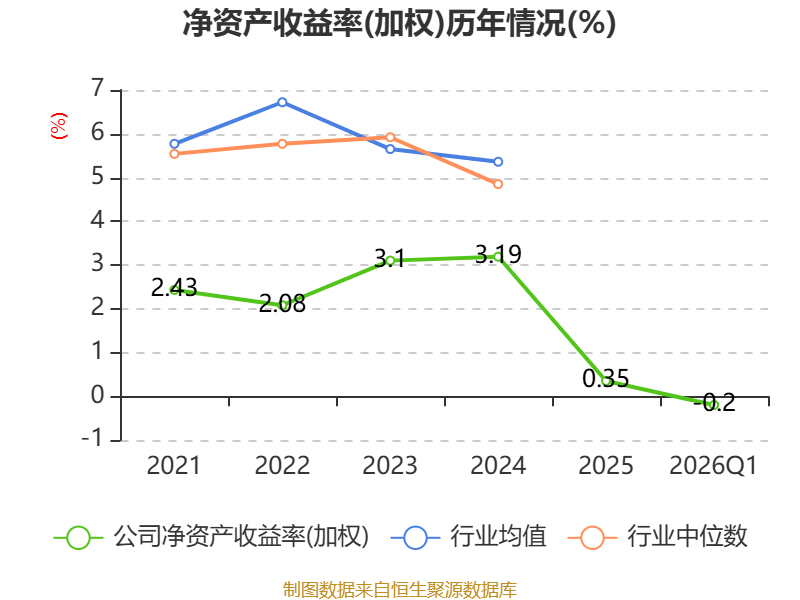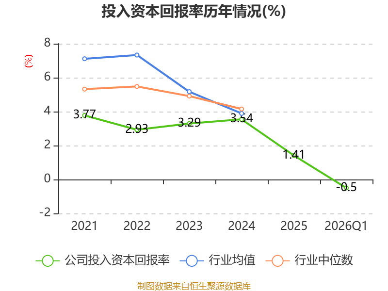 盈利能力方面, 2026年一季度公司加权平均净资产收益率为-0.2%,同比下降0.39个百分点。公司2026年第一季度投入资本回报率为-0.5%,较上年同期下降0.9个百分点。