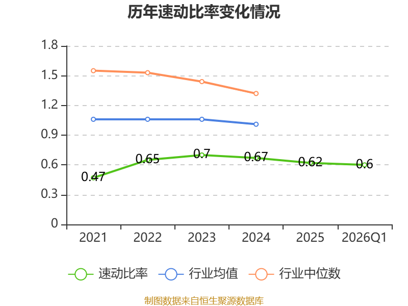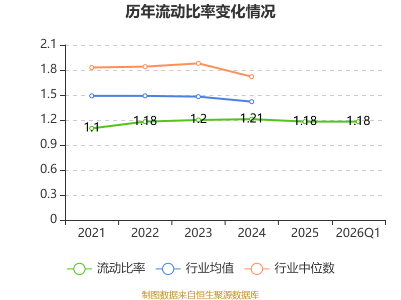 2026年第一季度,公司流动比率为1.18,速动比率为0.6。